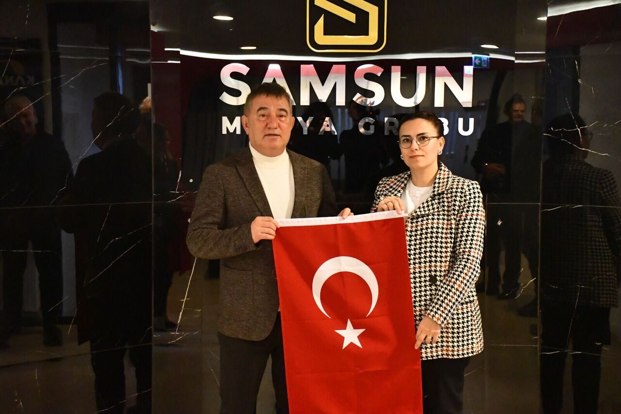 İYİ Parti İlkadım İlçe Başkanı Av. Burcu Işıtan Satar ve yönetim kurulu üyeleri, Samsun Medya Grubu'nu ziyaret ederek, Yayın Kurulu Başkanı Necdet Uzun'la görüştü. Satar, Uzun'a Türk bayrağı hediye etti.