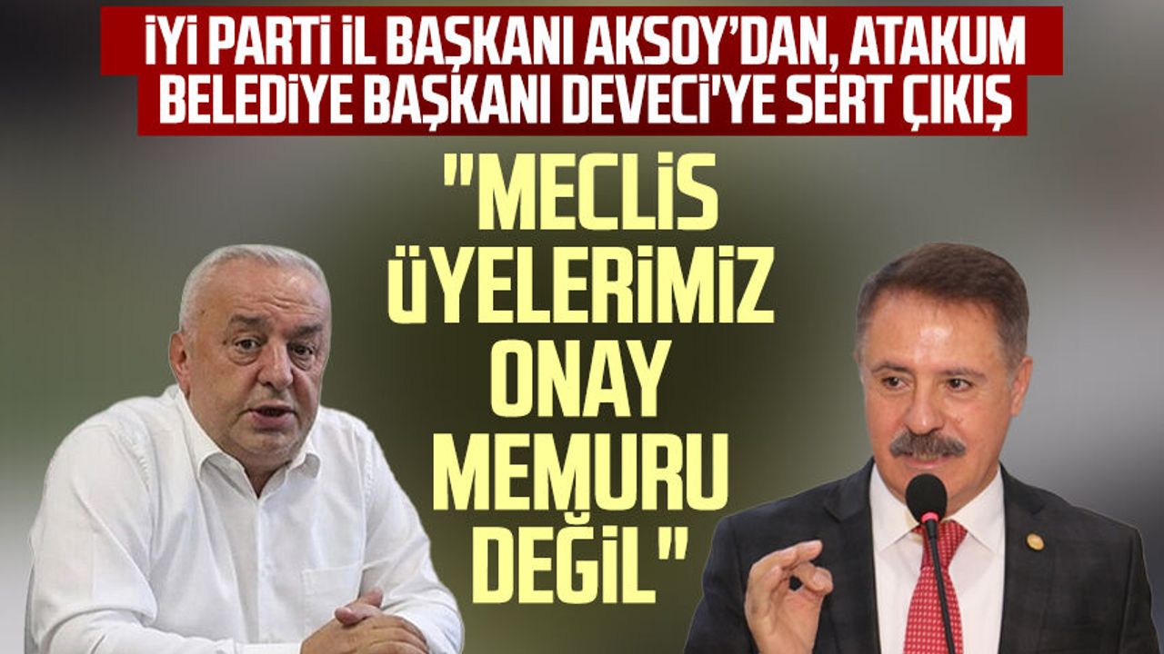 Belediye Başkanı Cemil Deveci başkanlığında yapılan Atakum Belediyesi meclis toplantısında, ek bütçe talebi, ihtiyaç olmadığı gerekçesiyle AK Parti, İYİ Parti ve MHP’nin ret oylarıyla birlikte kabul edilmeyince, duruma tepki gösteren Atakum Belediye Başkanı Cemil Deveci'ye bu kez İYİ Parti Samsun İl Başkanı Hasan Aksoy'dan cevap verdi. Aksoy, "Partimiz meclis Üyeleri belediye başkanının onay memuru değildir" dedi.