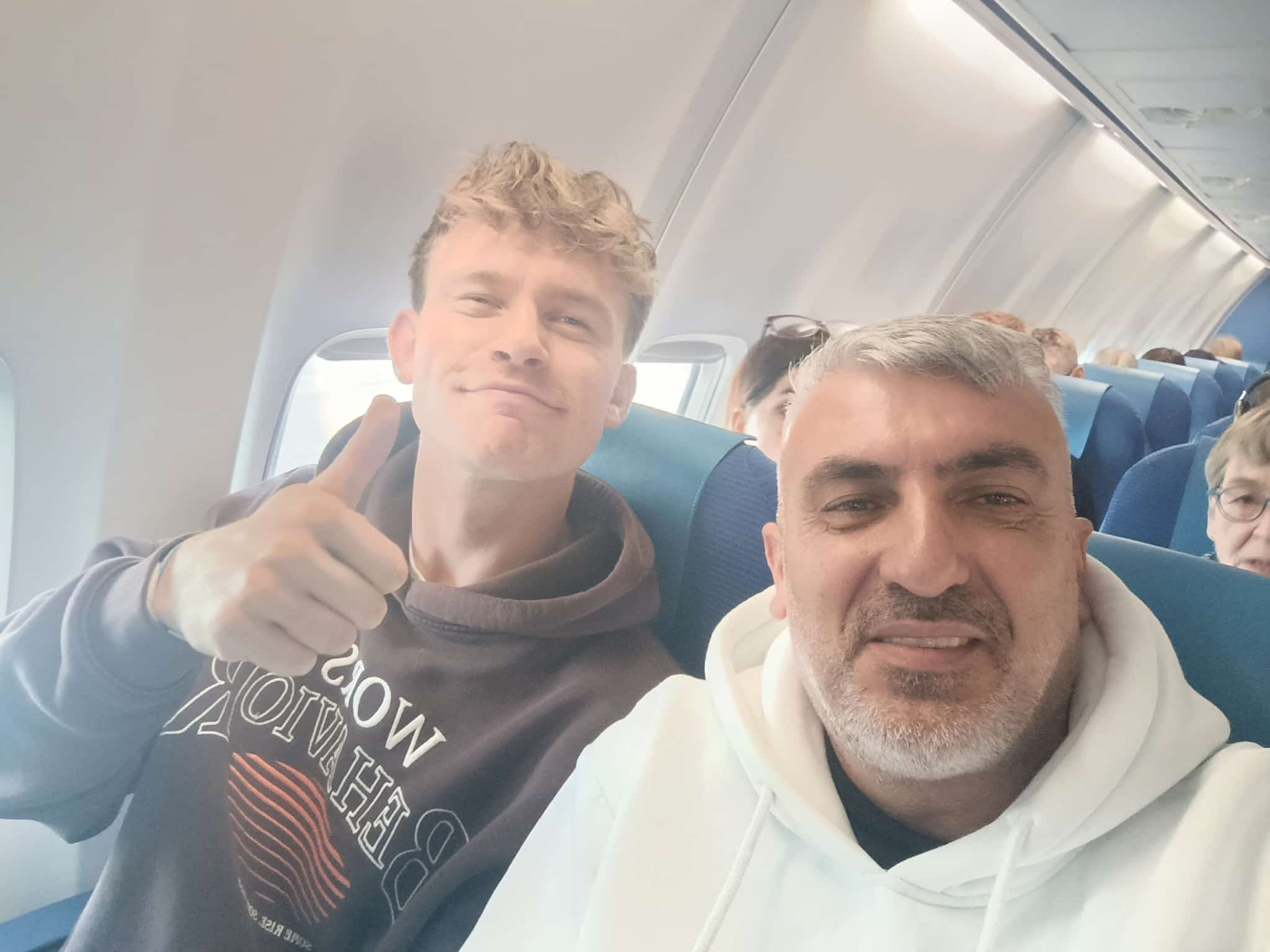 Samsunspor Taraftarları Aileler Derneği Başkanı Cüneyt Şenkal Konferans Ligi karşılaşması için İzlanda'ya gittiği uçakta yanında bulunan yolcu Timo'ya 'En büyük Samsunspor' dedirtmesi renkli görüntülere sahne oldu.