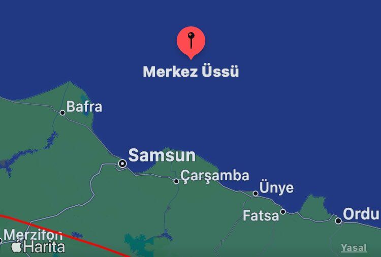 Kandilli Rasathanesi Samsun açıklarında 28 Eylül Perşembe saat 16:47 sularında deprem olduğunu açıkladı.