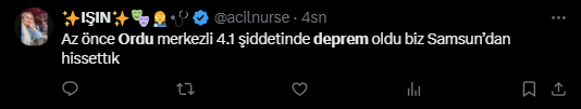 ORDU'DAKİ DEPREM SAMSUN'DA HİSSEDİLDİ Mİ?