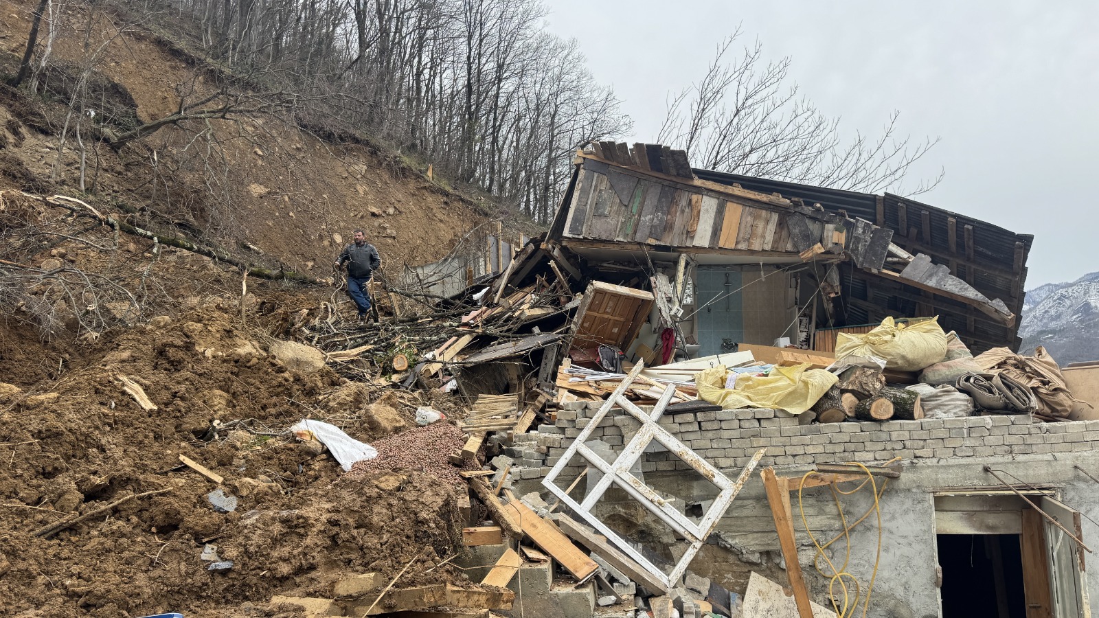 Heyelan sırasında evin yakınlarında bulunduğunu belirten Navdar, "Heyelanın geldiğini fark edince bölgeden kaçarak uzaklaştım. Yamaçtan kopan toprak ve ağaçlar eve sürüklendi. Ev tamamen zarar gördü, yıkıldı. Ahırın üst kısmı da yıkıldı. Zor kurtulduk." dedi.