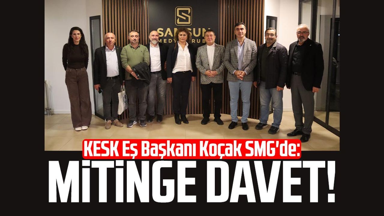 KESK Eş Başkanı Ayfer Koçak, KESK Genel Mali Sekreteri Erdal Karakuş, ESM Genel Başkanı Mehmet Coşkun Doğanay, ESM Samsun Şube Başkanı M.Niyazi Bulut, Tarım Orkam Sen Samsun Şube Başkanı Erdem Avcı, Tüm Bel-Sen Samsun Şube Sekreteri Özcan Çelik ve ESM Samsun Şube Sekreteri Veli Kebapcı, yarın saat 13.00'te Cumhuriyet Meydanı'nda 'Halk İçin Bütçe-Demokratik Türkiye' sloganıyla düzenlenecek yürüyüş ve miting öncesi Samsun Medya Grubu'nu ziyaret etti.