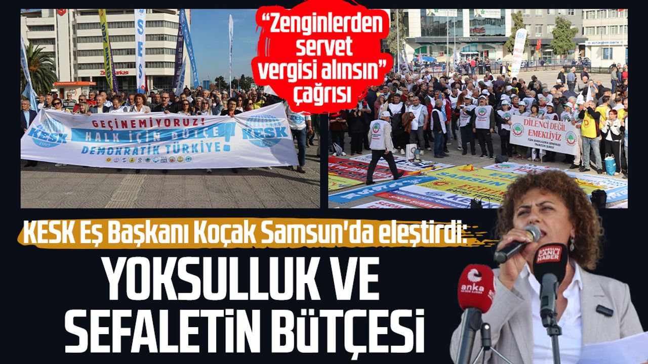 KESK Eş Başkanı Ayfer Koçak, “Halktan, emekten yana bütçe” talebiyle Samsun Cumhuriyet Meydanı'nda düzenlenen buluşmada yaptığı konuşmada, 2026 bütçesini sert sözlerle eleştirdi. Koçak, “Bu bütçe emeğin değil, sermayenin bütçesidir. Yoksulluğu, eşitsizliği ve güvencesizliği büyütüyor” dedi.