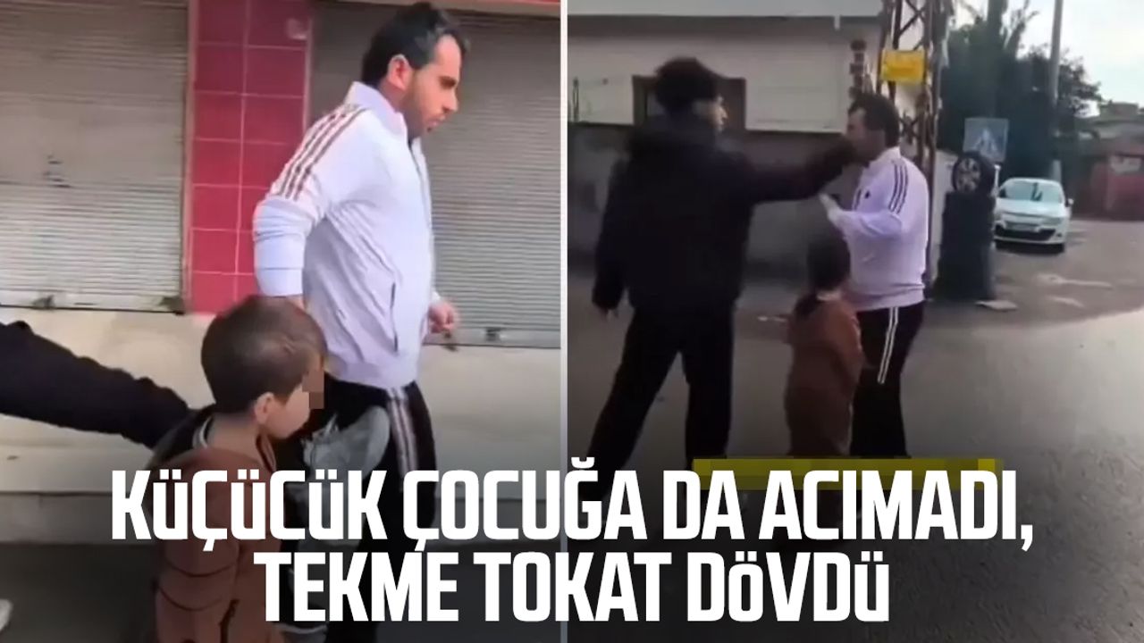 Bir kişinin, çocuğuna şiddet uyguladığını öne sürdüğü babaya sokak ortasında saldırmasıyla ortalık karıştı. Öfkeli şahıs, baba ve çocuğunun yanında yaşanan olayda defalarca vurup küfürler savururken, yaşananlar kameralara yansıdı.