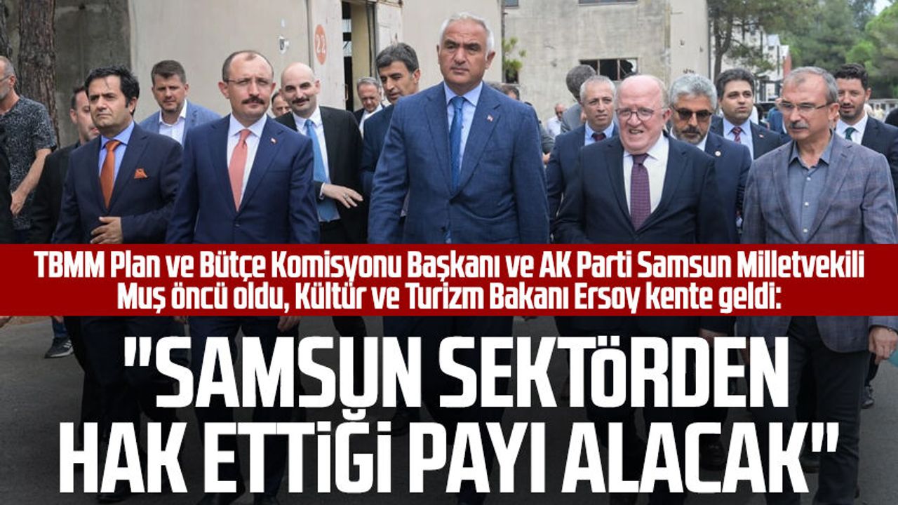 TBMM Plan ve Bütçe Komisyonu Başkanı ve AK Parti Samsun Milletvekili Dr. Mehmet Muş'un öncülüğünde başlatılan turizm tanıtma hamlesi kapsamında Samsun'a gelen Kültür ve Turizm Bakanı Mehmet Nuri Ersoy Samsun'da turizm sektörünü canlandırmak için yapılacak çalışmalar ile tarihi ve doğal güzelliklerde incelemelerde bulundu. Bakan Ersoy, "Samsun, sanayi, tarım, spor, kültür ve sanat ile ilgili şehir olmanın yanı sıra, şimdi de turizm ile ön plana çıkan bir kent olma yolunda gerekli adımları hızla atıyor" dedi.