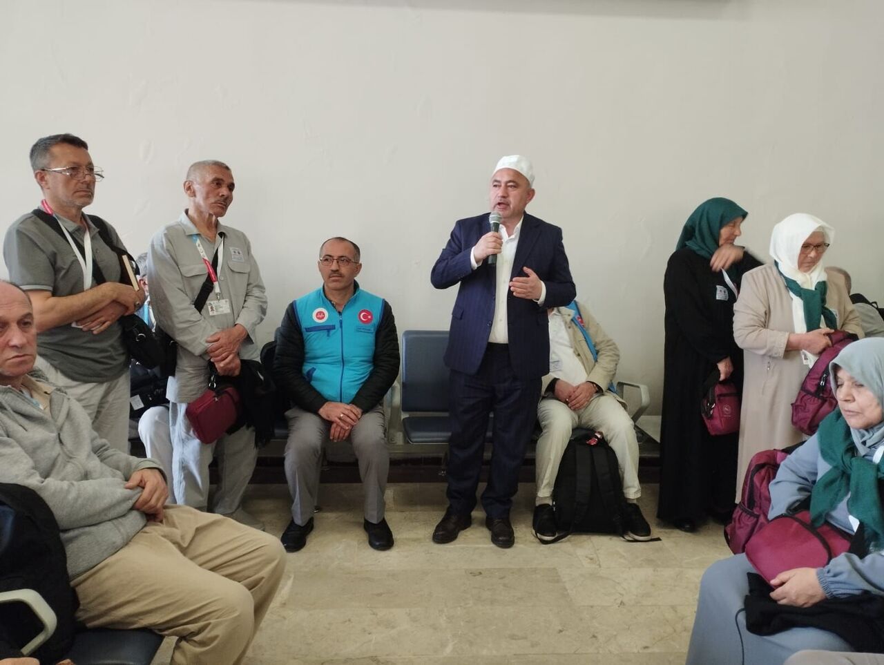 İl Müftüsü Çakır, hacılara hac yolculuğunun ruhu ve haccın önemine dair konuşma yaparken ardından hacı adaylarını duygulandıran bir duada bulundu.
