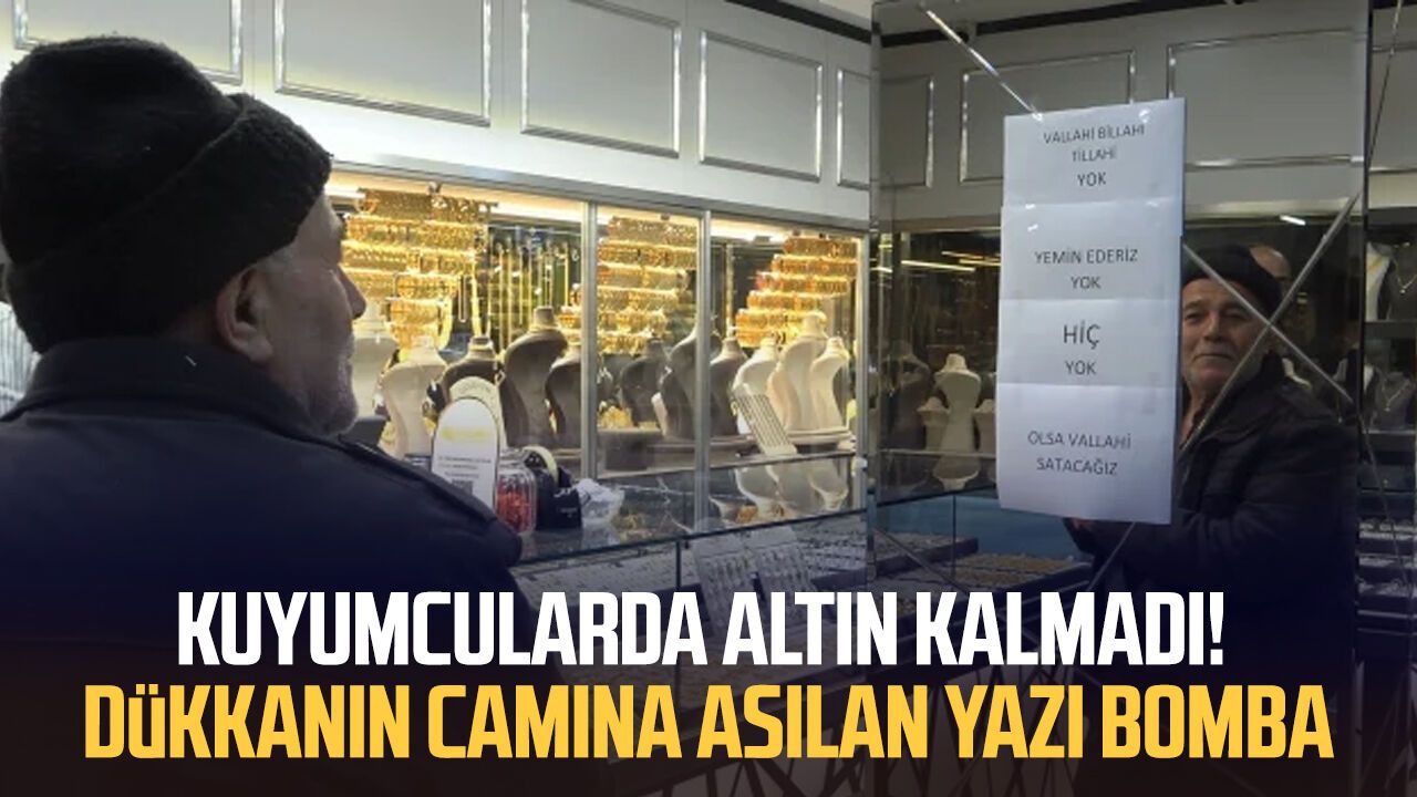 Bursa’nın Yıldırım ilçesinde bir kuyumcu, altınların tükenmesi üzerine dükkân camına “Vallahi billahi yok, yemin ederim yok” yazısı astı. Buna rağmen vatandaşların ısrarı sürerken, esnaf ile müşteriler arasında ilginç diyaloglar yaşandı. Bir müşterinin “Bir gram da mı yok?” sorusuna kuyumcunun “Yok abi, olsa kendime ayırırım” yanıtı dikkat çekti.