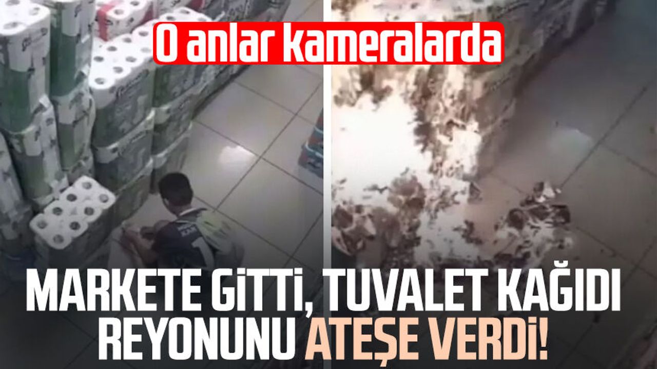 MARKETE GİDEN ÇOCUK TUVALET KAĞIDI REYONUNU ATEŞE VERDİ