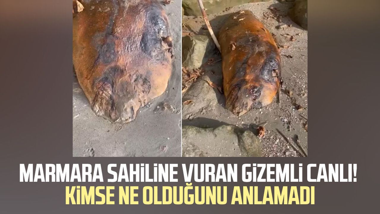 Marmara Denizi’nden kıyıya vuran gizemli deniz canlısını gören vatandaşlar, neye uğradıklarını şaşırdı. Kıyıda hareketsiz halde bulunan ve vücudu çürümeye başlamış canlının türü hakkında farklı tahminler yürütüldü.