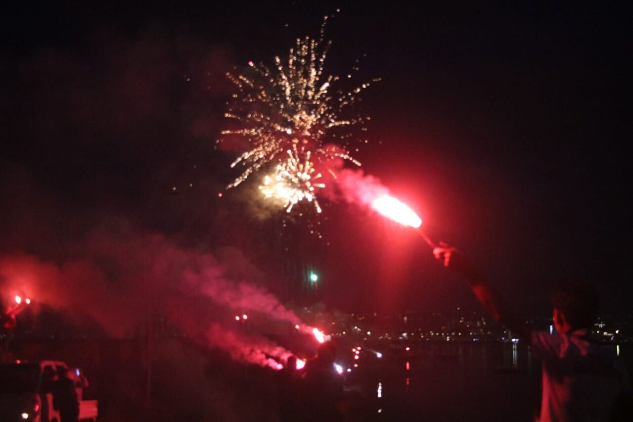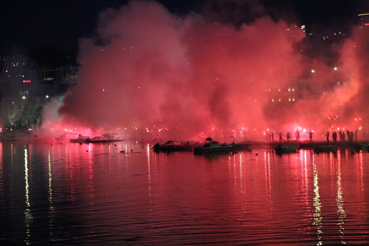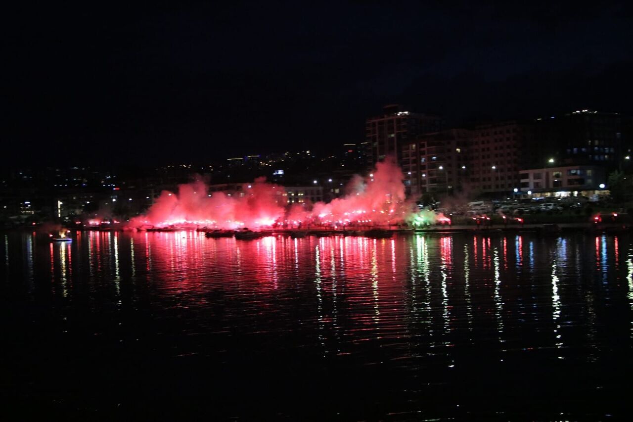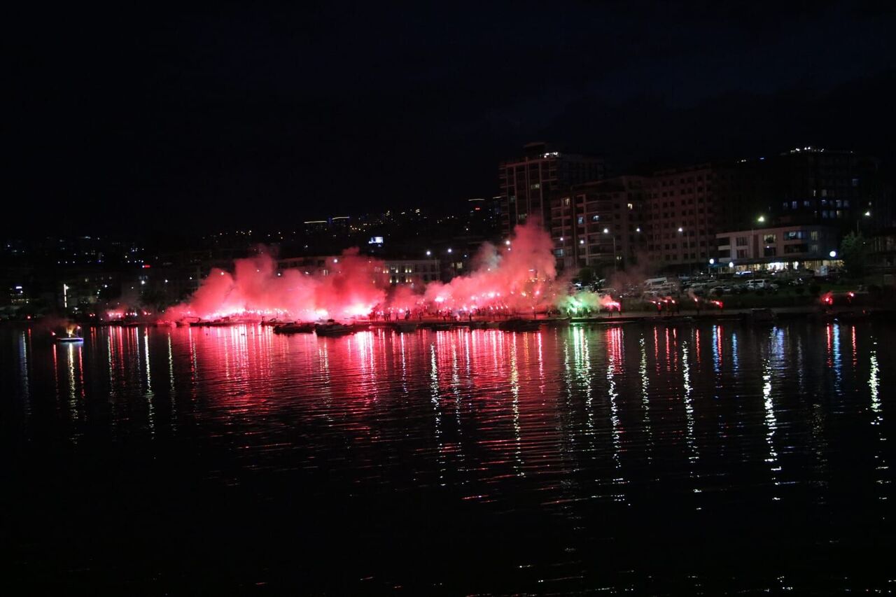 Atakum İlçesi'nde toplanan Kırmızı-Beyazlı taraftar, tezahüratlarla Kurupelit Yat Limanı'na gelip, sahil boyunca yan yana dizilerek, takımlarının 60. yıl dönümünde binlerce meşale yaktı.