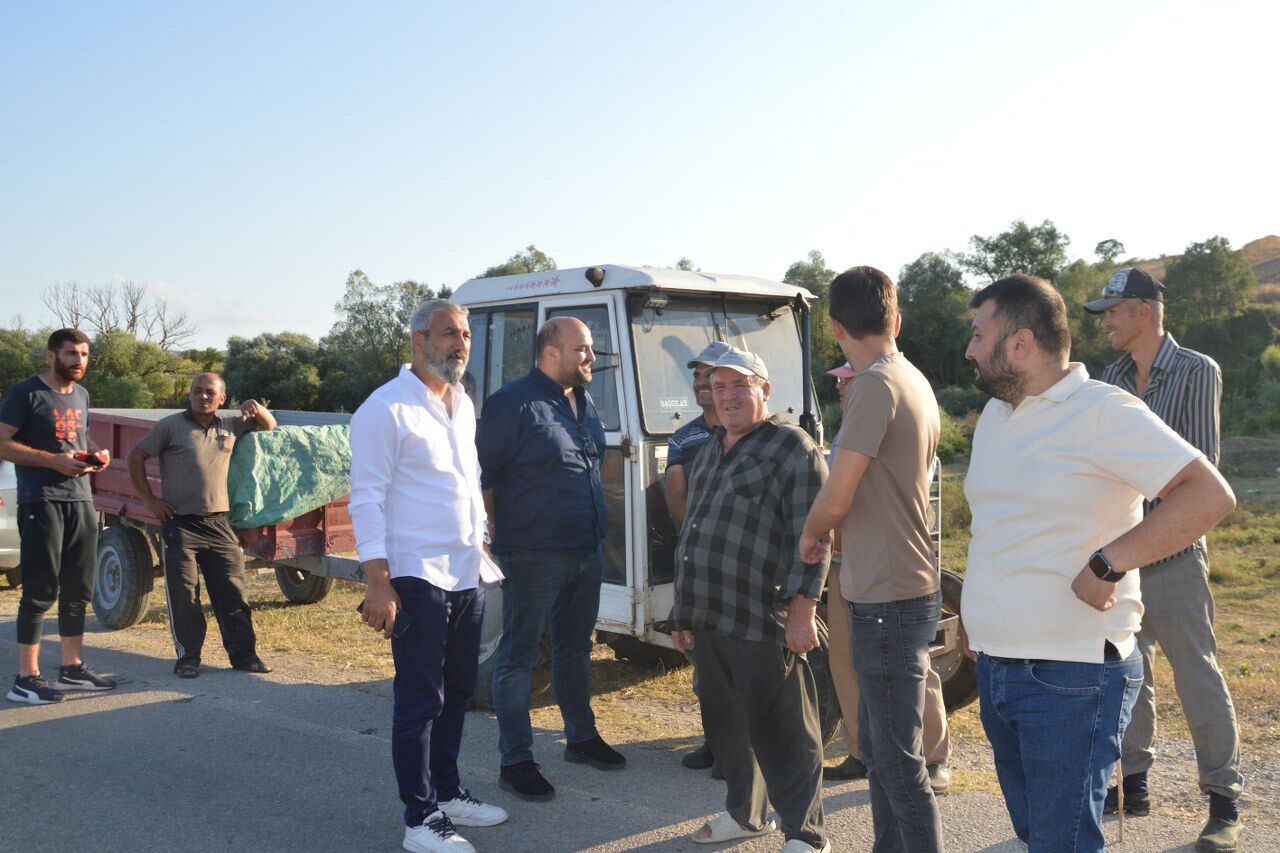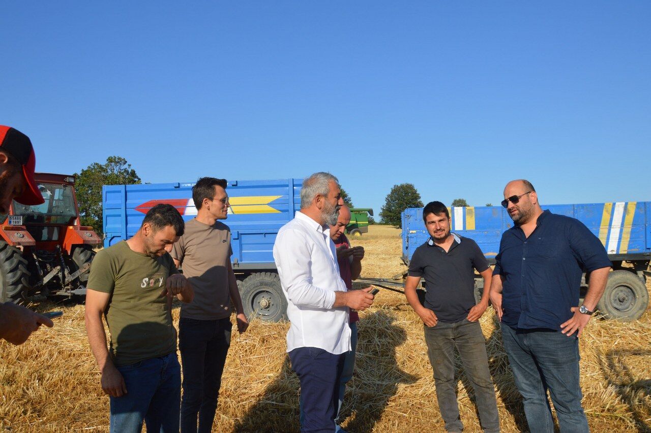 Dereköy ve Demiryurt mahallelerinde hasat yapan çiftçileri tarlada ziyaret eden heyet üreticilerle sohbet ederek çalışmalar hakkında bilgi aldı.