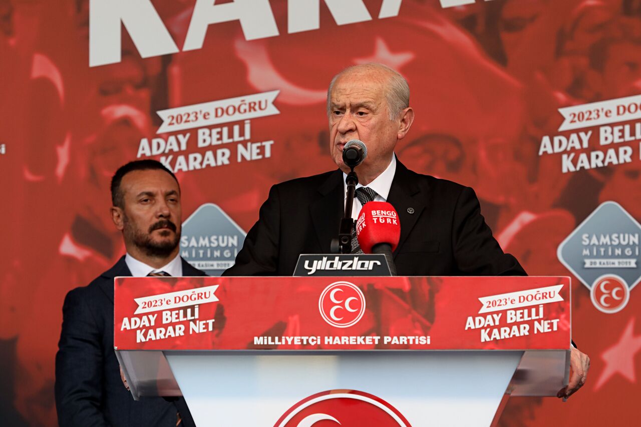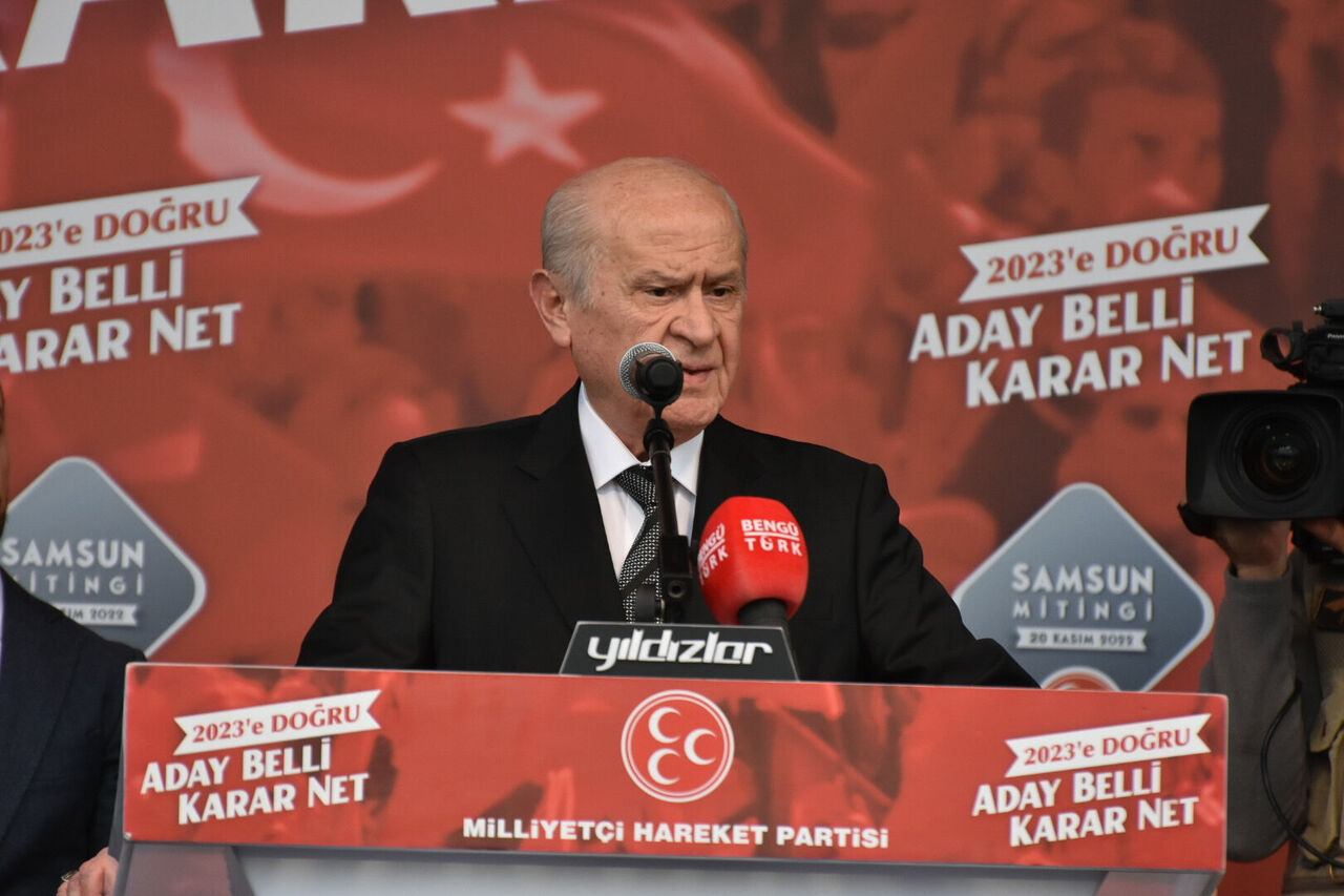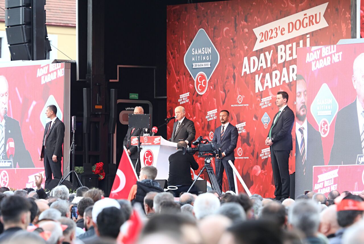 MHP Genel Başkanı Devlet Bahçeli, Samsun’da düzenlenen “2023’e Doğru: Aday Belli, Karar Net” mitinginde vatandaşlara seslendi. Sınır ötesi operasyon, 2023 seçimleri, Millet İttifakı’nın tutumu ve terör konularına değinen MHP Lideri Bahçeli, önemli açıklamalarda bulundu.