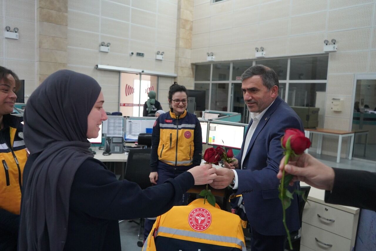 112 Acil Çağrı Merkezi’nde görev yapan kadın çalışanlara çiçek takdim eden MHP heyeti, onların taleplerini dinleyerek destek mesajı verdi. Kadınların her alanda daha güçlü temsil edilmesi gerektiğini belirten Mucur, MHP olarak kadın hakları ve istihdamına yönelik çalışmalara her zaman destek verdiklerini ifade etti.