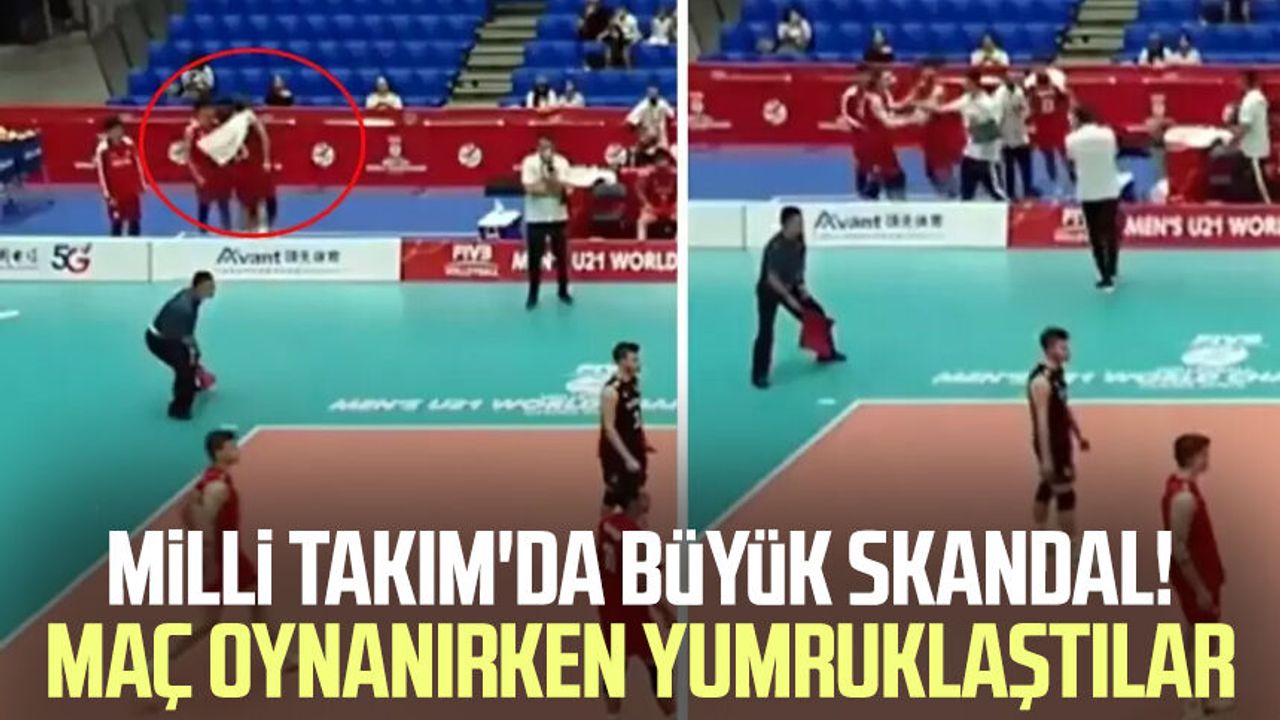 Çin'in ev sahipliğinde düzenlenen U21 Erkekler Voleybol Dünya Şampiyonası'nda skandal bir olay yaşandı. Geçtiğimiz günlerde oynanan Mısır- Türkiye voleybol maçında, yedek oyuncularımız arasında kavga çıktığı iddia edilmişti. Şimdi ise bu olayın görüntüleri ortaya çıktı.