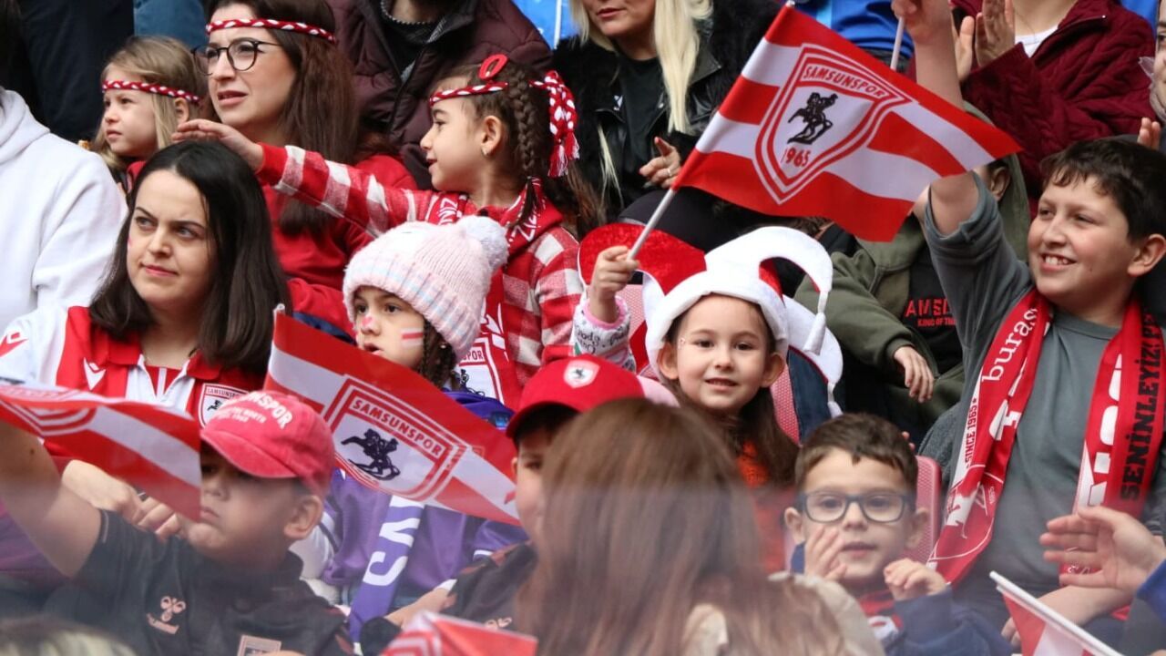 Samsunsporlu minikler, aileleriyle birlikte tribünlerde yer alarak takımlarına destek verdi. Renkli görüntülerin oluştuğu karşılaşmada, tribünlerde coşku dikkat çekti.