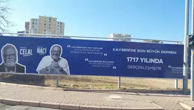 Kayseri'de bir beton firması, deprem uzmanları Prof. Dr. Naci Görür ile Prof. Dr. Celal Şengör'e ait olduğu iddia edilen Kayseri depremiyle ilgili iki cümleyi reklam panosuna taşıdı. Reklamdaki iddiaya göre, Kayseri'de deprem beklenmiyor.