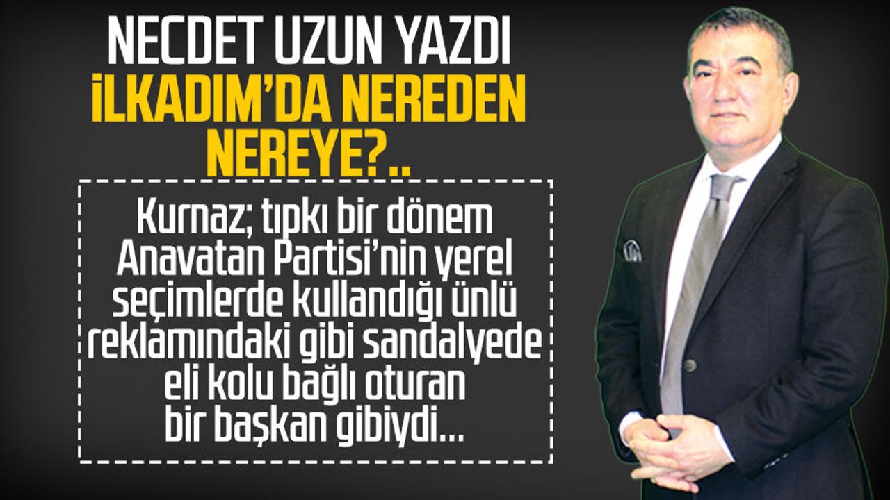 Kurnaz; tıpkı bir dönem Anavatan Partisi’nin yerel seçimlerde kullandığı ünlü reklamındaki gibi sandalyede eli kolu bağlı oturan bir başkan gibiydi...
