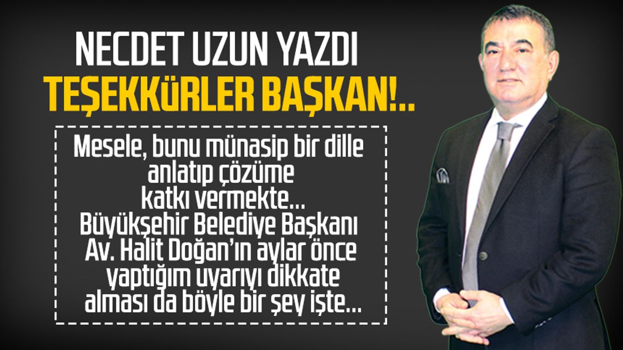 Büyükşehir Belediye Başkanı Av. Halit Doğan’ın aylar önce yaptığım uyarıyı dikkate alması da böyle bir şey işte...