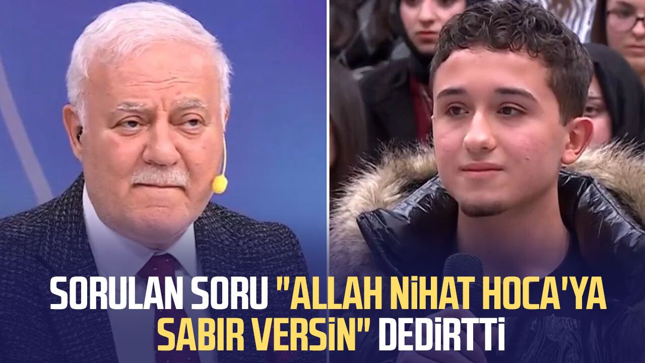 Programda sorulan soru kısa sürede sosyal medyada da gündem oldu. Bazı kullanıcılar sorunun ilginçliğine dikkat çekerek “Allah Nihat Hoca’ya sabır versin” şeklinde yorumlar yaptı.