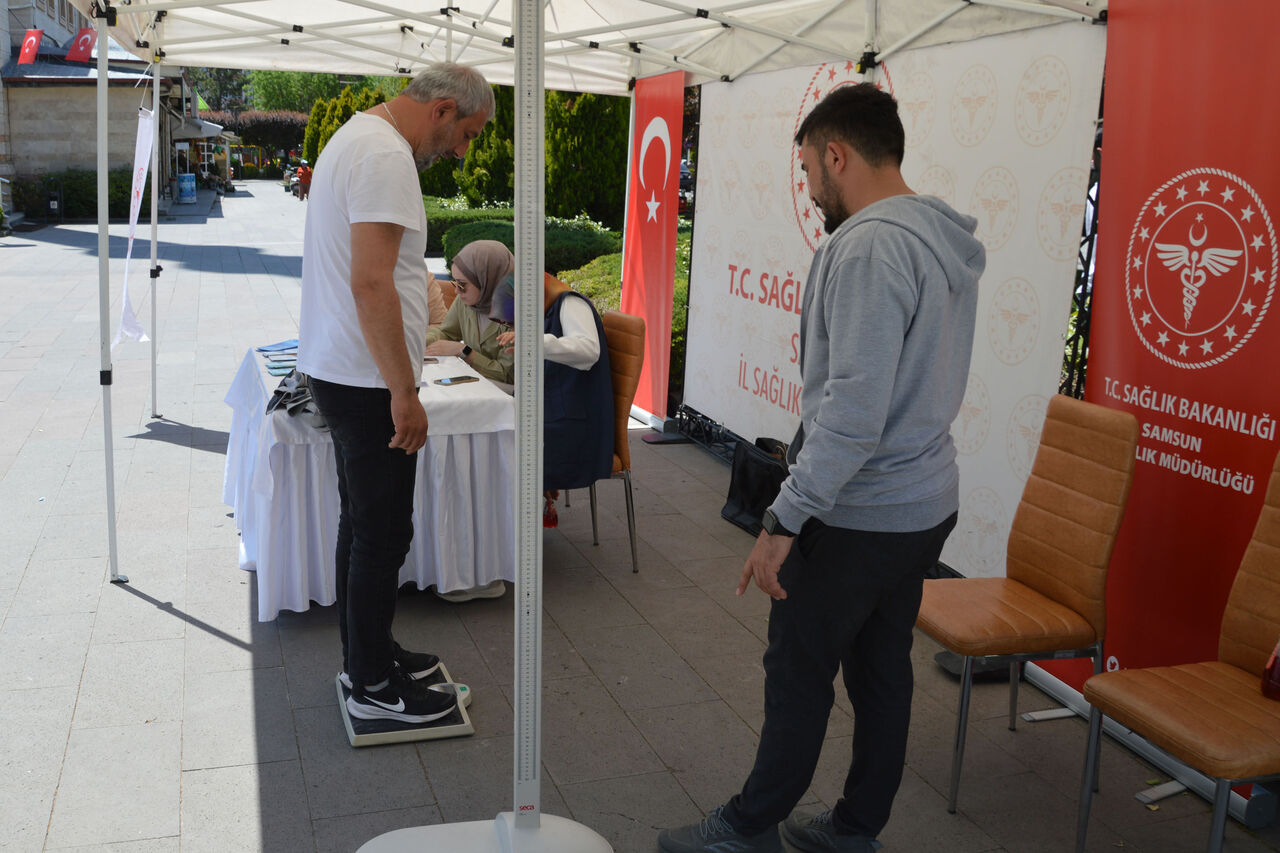 Etkinlik kapsamında, Kevser Cami önünde kurulan stantta Havza İlçe Sağlık Müdürlüğü çalışanları ve diyetisyen Özlem Sonkaya nezaretinde vatandaşların boy ve kilolarını ölçerek vücut kitle indeksini hesaplandı. Doğru ve dengeli beslenme ile obezite hakkında bilgilendirmeler yapılarak broşür de dağıtıldı.