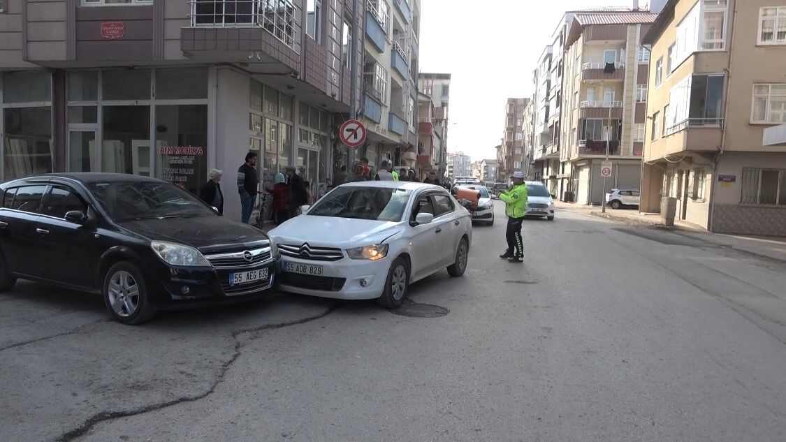 Karşı istikametten gelen 55 AHH 632 plakalı otomobil, yola savrulan motosiklet sürücüsüne çarpmamak sağa doğru manevra yaptı. Manevra yapan otomobil sürücüsü, Şehit Ayhan Kalkan Caddesi’nden Ali Kale Caddesi’ne çıkmak için bekleyen 55 AEG 632 plakalı otomobile çarptı. Kazada otomobillerde maddi hasar meydana gelirken, önünde seyir halindeki kurye motosikletine çarpan motosiklet sürücüsü Emre C. ise yaralandı. Yaralı motosiklet sürücüsü olay yerine gelen acil servis ekiplerince Bafra Devlet Hastanesine kaldırıldı.