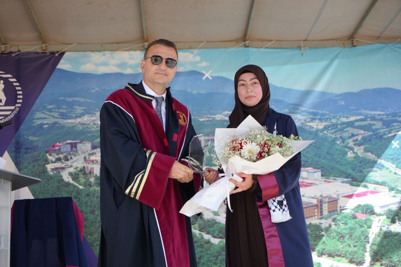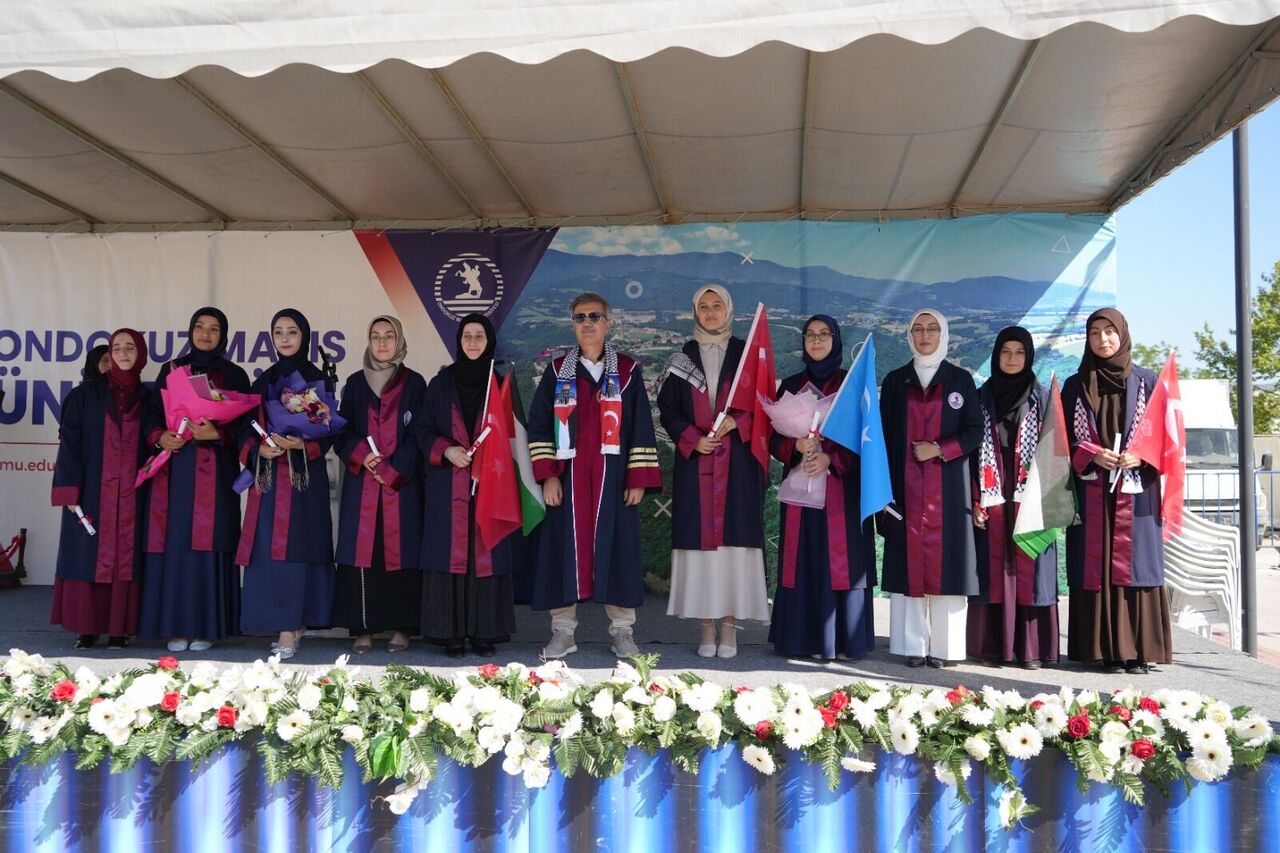 Ondokuz Mayıs Üniversitesi (OMÜ) İlahiyat Fakültesi 2024-2025 akademik yılı mezuniyet töreni ile 216 mezununu uğurladı. OMÜ Yaşam Merkezi'nde gerçekleşen 39. dönem mezuniyet töreni; saygı duruşu ve İstiklal Marşı ile başladı, daha sonra Kur'an-ı Kerim tilavetiyle devam etti. Mezuniyet töreninde, mezun olan öğrencilere başarı belgeleri verildi. Fakülteden mezun olan Sümeyye Bulut, başarısıyla dikkat çekti. Bulut hem fakülteden birinci olarak mezun oldu hem de hafızlığı bitirdi.