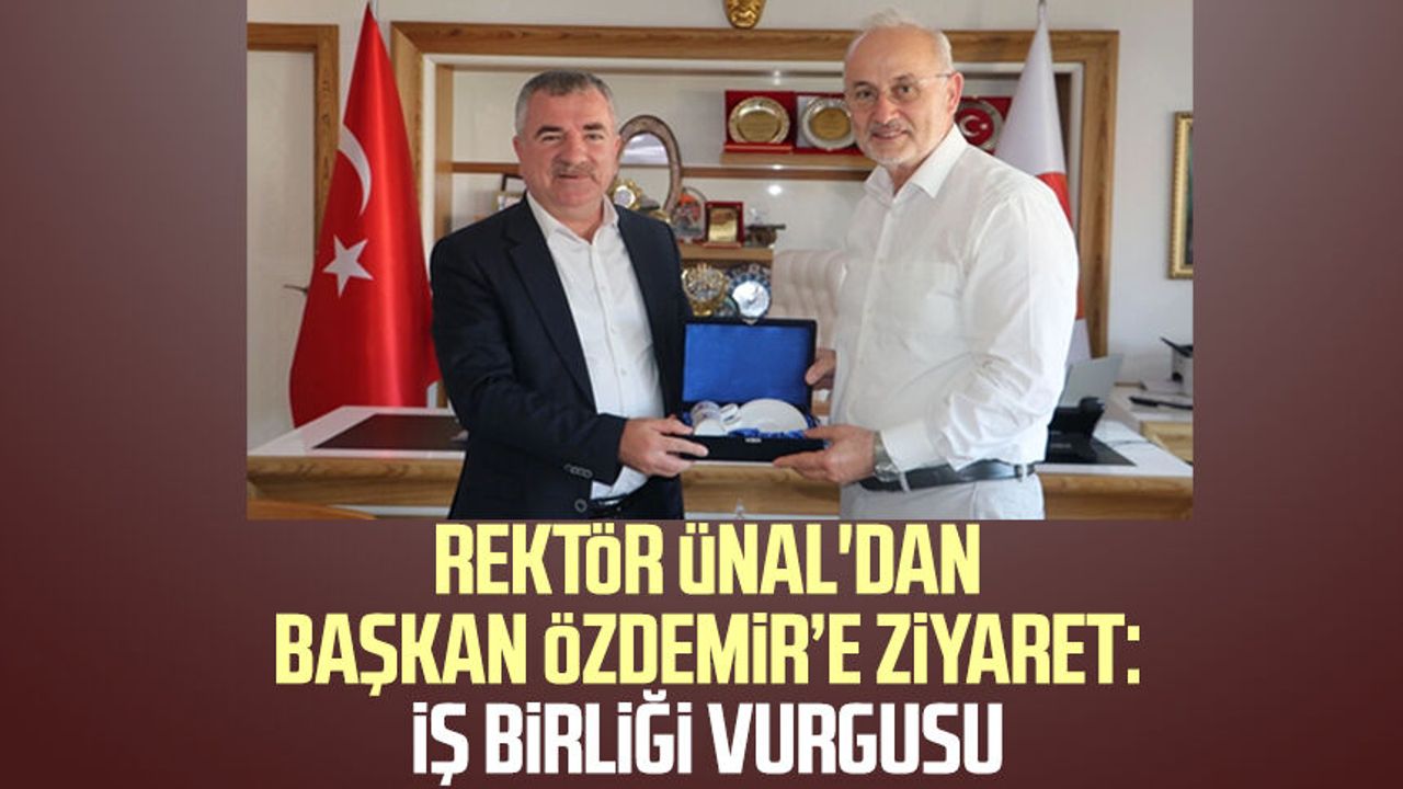 Ziyaretin sonunda OMÜ Rektörü Prof. Dr. Yavuz Ünal ziyaretin anısına Belediye Başkanı Sebahattin Özdemir'e hediye takdim etti.