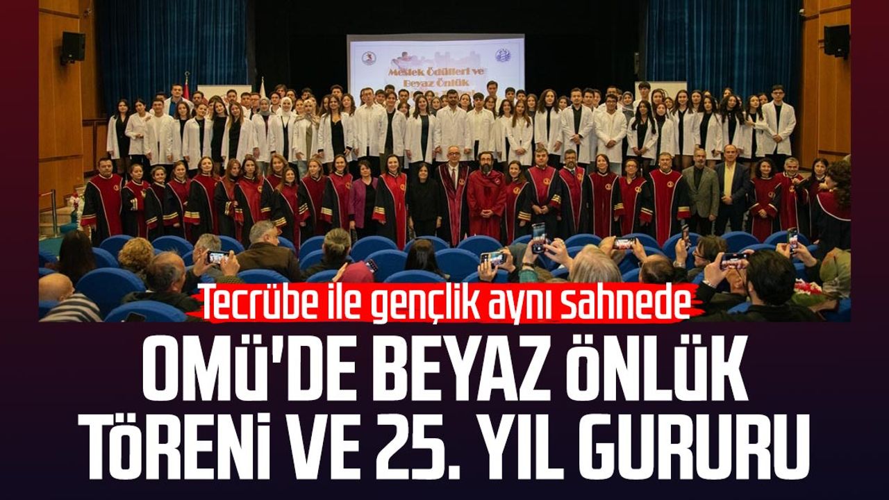 OMÜ Atatürk Kültür Merkezi’nde düzenlenen programda, 25. yıl plaketi verilen hekimler sahneye alkışlarla davet edildi. Törenin ikinci bölümünde ise fakülteye yeni başlayan öğrenciler beyaz önlüklerini giyerek mesleğe adım attı. Salon, ailelerin gururu ve öğrencilerin heyecanı ile renklendi.