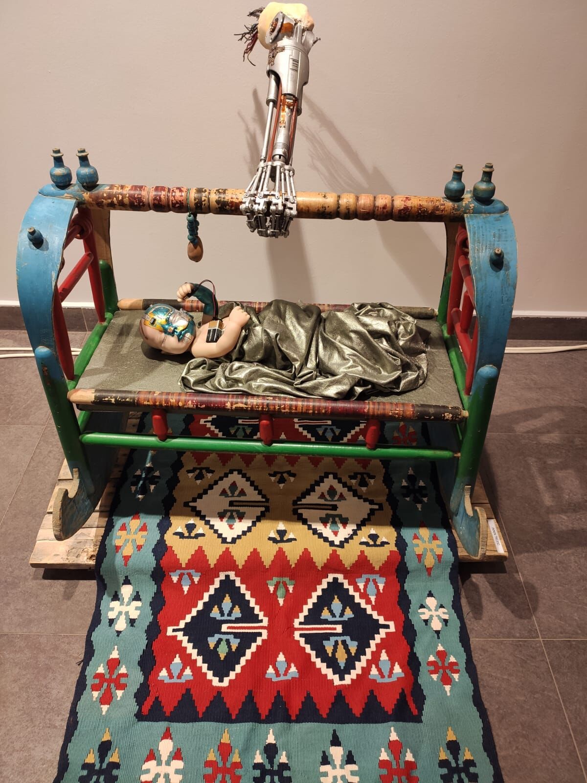 Eski aletlerin nostaljik yapısının, günümüz teknolojisi ve popüler kültür ögeleriyle harmanlandığı eserlerde, çok katmanlı bir anlatı sunuluyor.