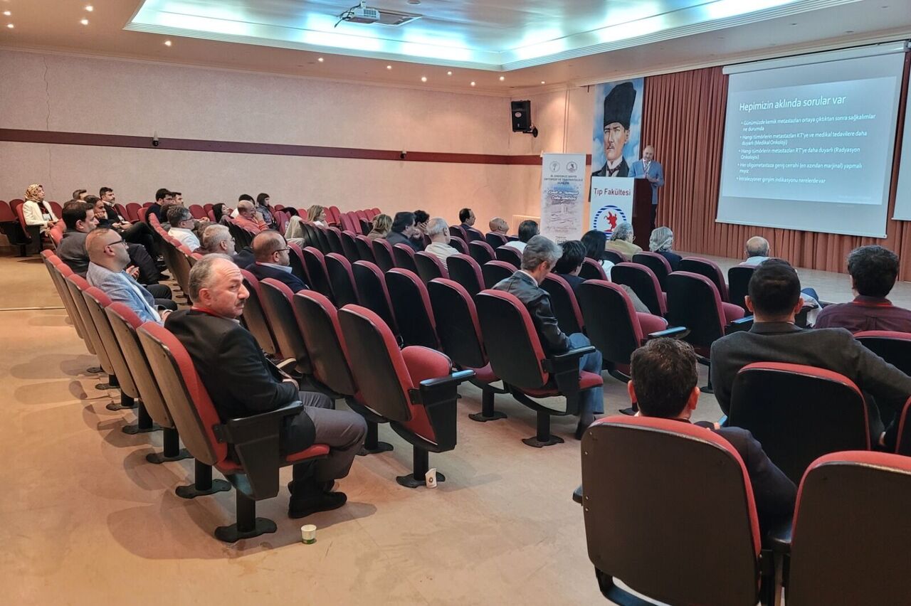 Tıp Fakültesi Dekanlık Oditoryumu'ndaki panelin açılış konuşmalarını Tıp Fakültesi Dekanı Prof. Dr. Murat Danacı ile Ortopedi ve Travmatoloji Anabilim Dalı Başkanı Prof. Dr. Nevzat Dabak yaptı.