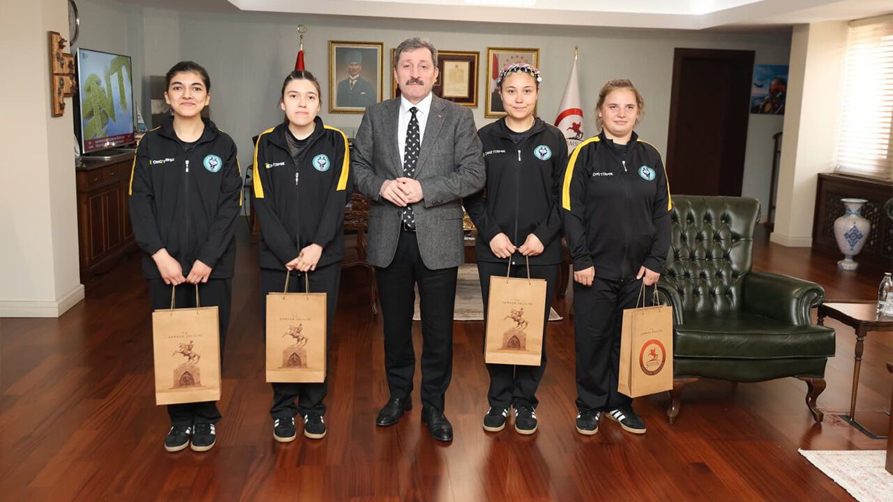 13-16 Nisan 2026 tarihleri arasında düzenlenen şampiyona için Çanakkale’nin Çan ilçesinden Samsun’a gelen Zeynep Bodur Okyay Özel Eğitim Meslek Okulu öğrencileri, beraberlerindeki öğretmen ve yöneticilerle birlikte Samsun Valisi Orhan Tavlı’yı ziyaret etti. Ziyarette Samsun Gençlik ve Spor İl Müdürü Feyzullah Dereci de yer aldı.
