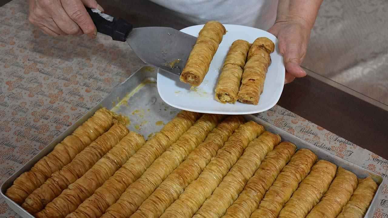 yufka açılır, fındık kavrulur ve hamurla birleştirilir; şerbetli veya kuru olarak pişirilir.