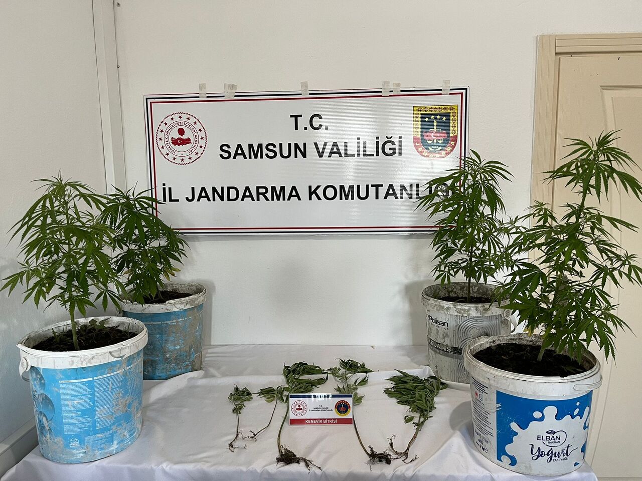 Şüpheli M.A'nın (40) ikametinde ve eklentilerinde yapılan aramada 9 kök kenevir bitkisi ele geçirildi.