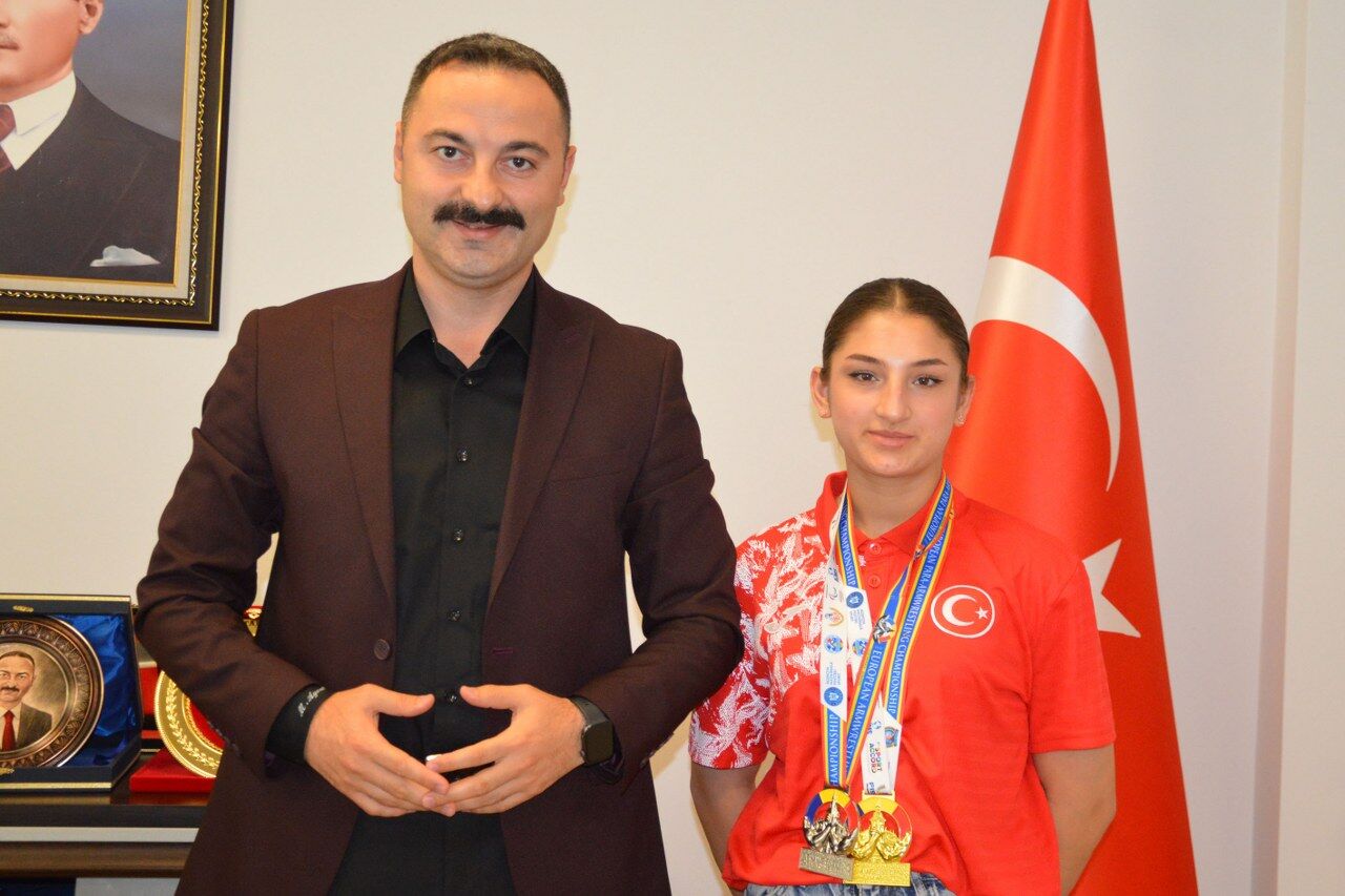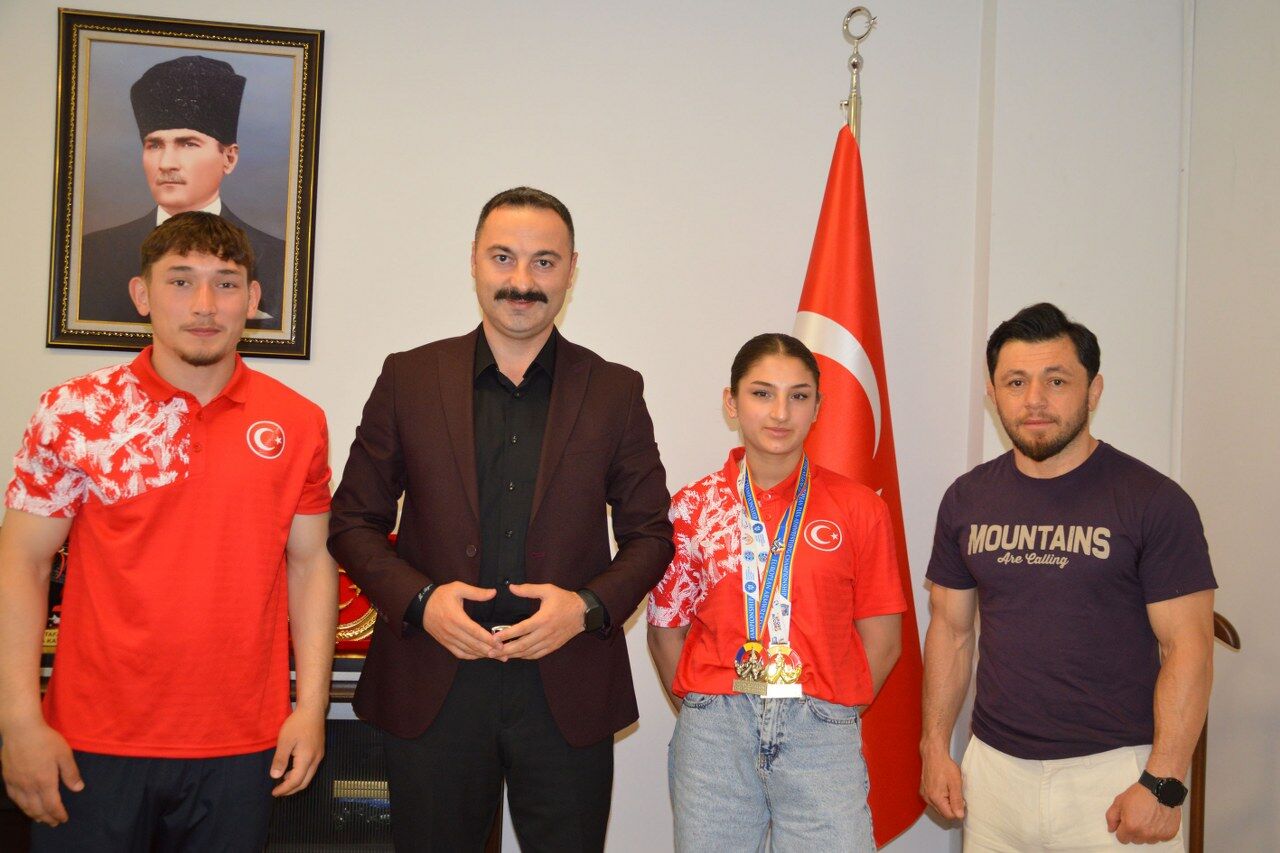Demir, şampiyona hakkında Kaymakam Ayvat'a bilgi vererek, "Allah nasip etti bir kez daha şanlı bayrağımızı göndere çektirerek İstiklal Marşı'mızı okuduk. İnşallah bundan sonraki hedefim gençler kategorisinde de Bulgaristan'da düzenlenecek Dünya Şampiyonasında dünya şampiyonu olmak. Bunun için çalışmalarımıza başlayacağız." dedi.