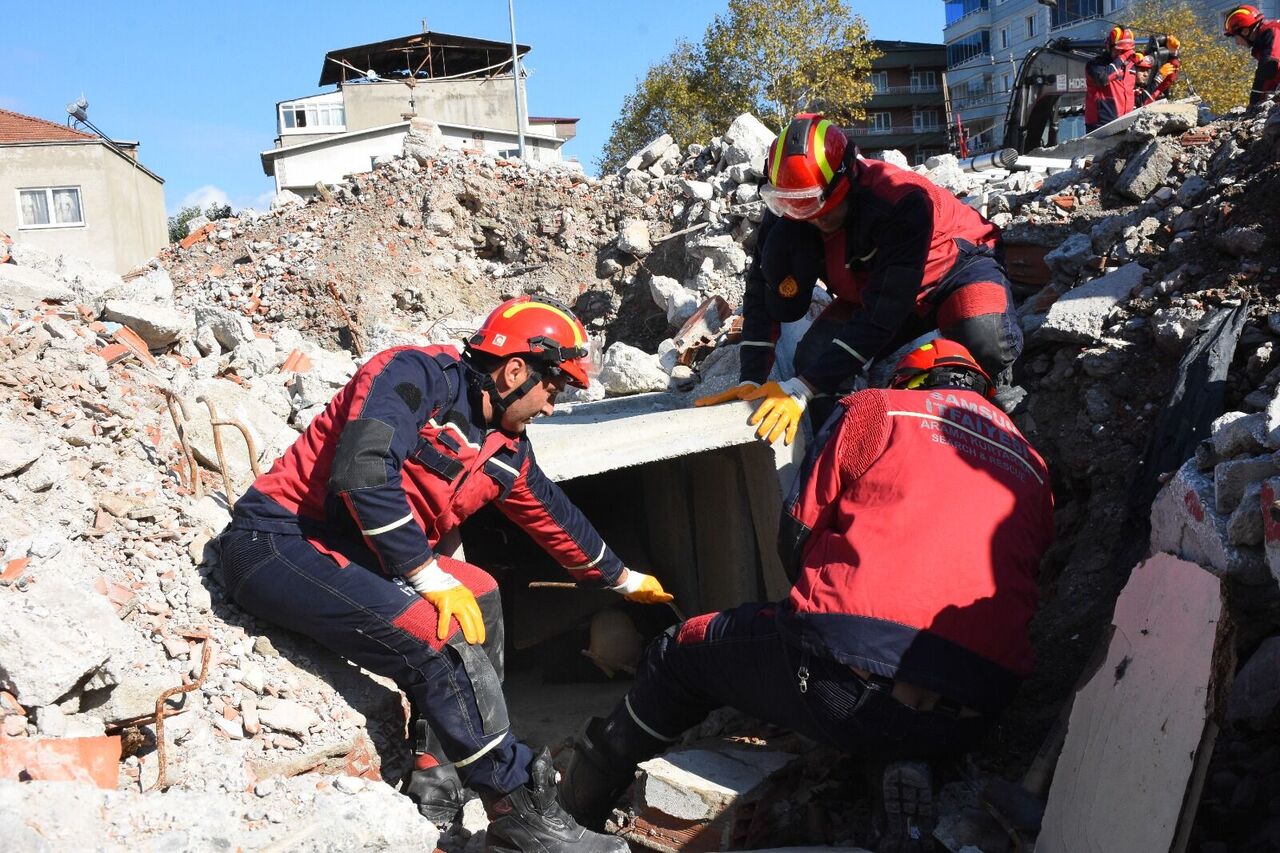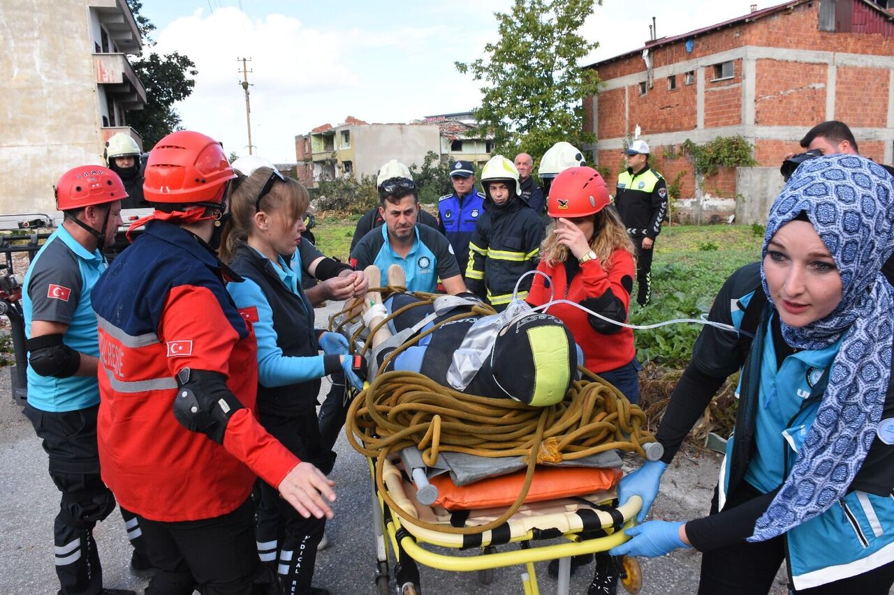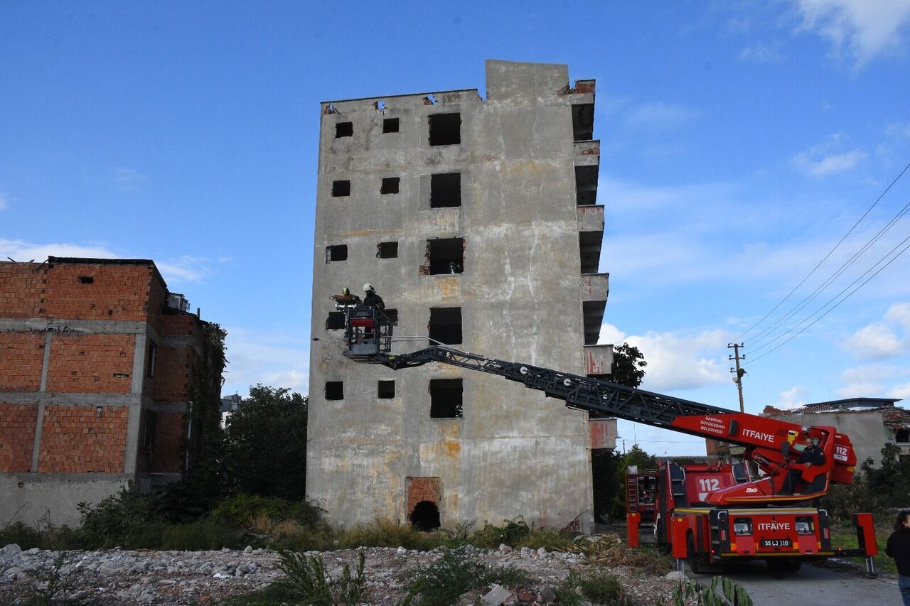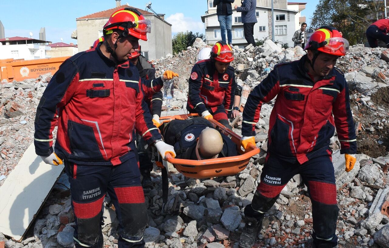 Canik ilçesi Soğuksu Mahallesi'ndeki kentsel dönüşüm alanında gerçekleştirilen tatbikatta, senaryo gereği 6,4 büyüklüğündeki depremin ardından enkazda kalanların olduğu ve depremden kaynaklı bir binada yangın çıktığı ihbarı yapıldı.