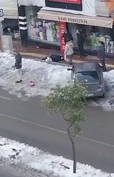 Birkaç dakika sonra, aynı yol üzerinde bir başka vatandaş da buzlanma nedeniyle kayarak yere düştü.