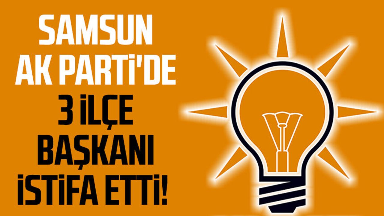 Samsun'da AK Parti Terme İlçe Başkanı Mümin Osman Ertan ile AK Parti Vezirköprü İlçe Başkanı Mehmet Kurt ve AK Parti Ladik İlçe Başkanı Recep Dirican görevlerinden istifa ettiklerini açıkladı.