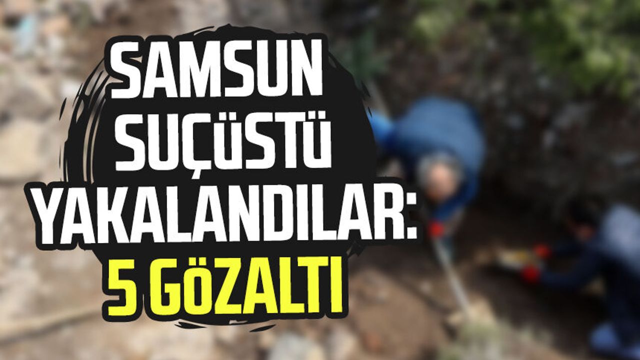 Alaçam İlçe Jandarma Komutanlığı ekiplerince Akbulut Mahallesi'nde ormanlık alanda kaçak kazı yapıldığı bilgisi üzerine yapılan operasyonda İ.Ş. (45), A.S. (56), S.H. (59), T.A. (60) ve İ.H. (59), kaçak kazı yaparken suçüstü yakalandı.