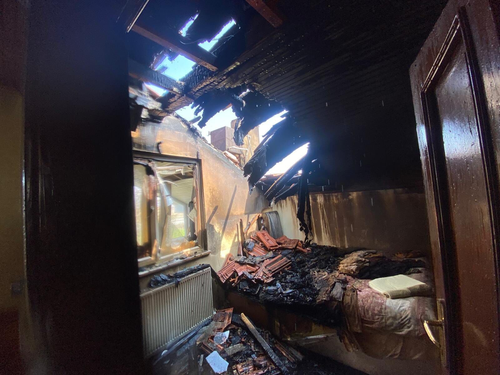 Yangın sonucu evde maddi hasar meydana gelirken, olayla ilgili inceleme başlatıldı.
