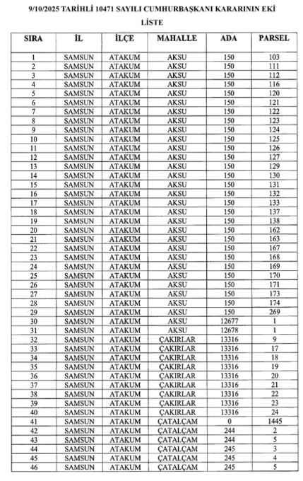 Ayrıca, Samsun'un Atakum ilçesindeki bazı taşınmazların, Batı Çevre Yolu Projesi'nin gerçekleştirilmesi için Samsun Büyükşehir Belediye Başkanlığınca acele kamulaştırmasına karar verildi.