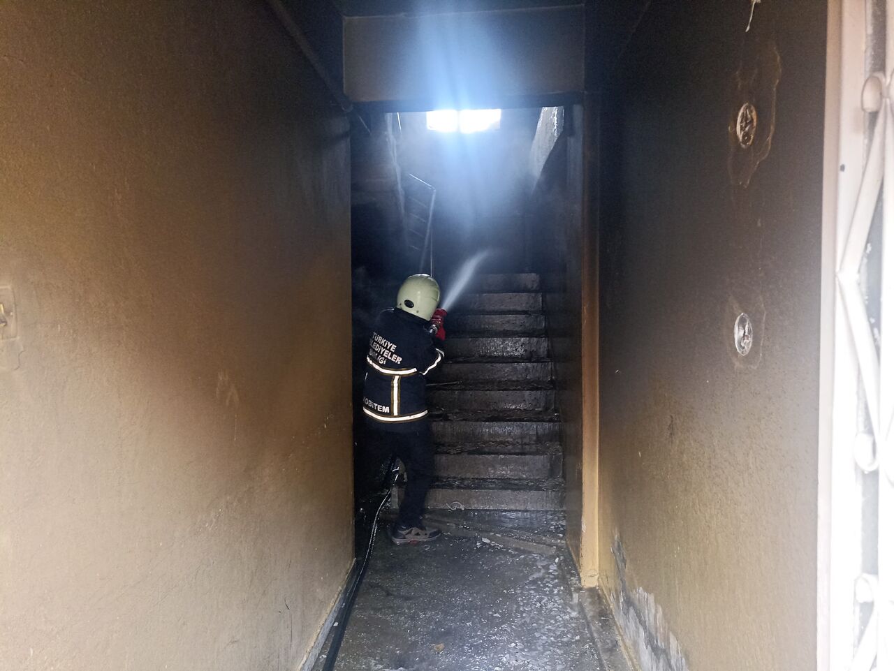 Edinilen bilgiye göre, binanın merdiven boşluğunda bulunan bisiklet, odun ve molozlar alev aldı.