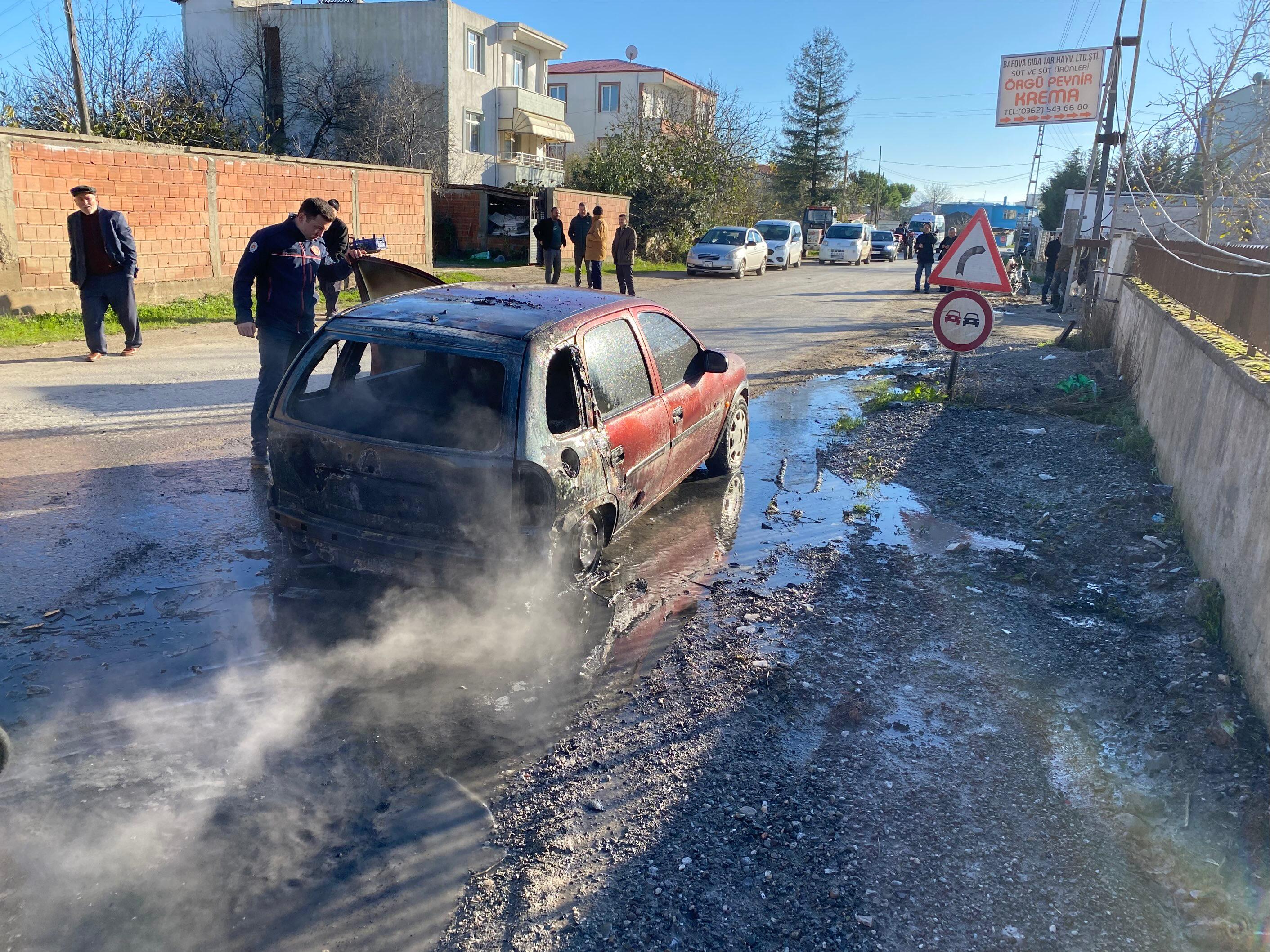 İtfaiye ekiplerince söndürülen yangın nedeniyle otomobil kullanılamaz hale geldi.