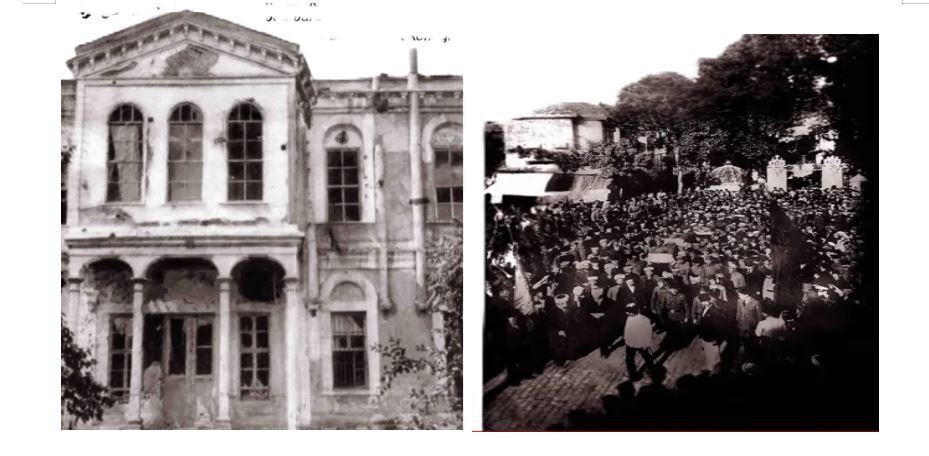 Fotoğraf 1-2: Bombardımandan zarar gören Hükümet Binası ve Samsun Büyük Cami'de, şehit olanlar için yapılan cenaze töreni