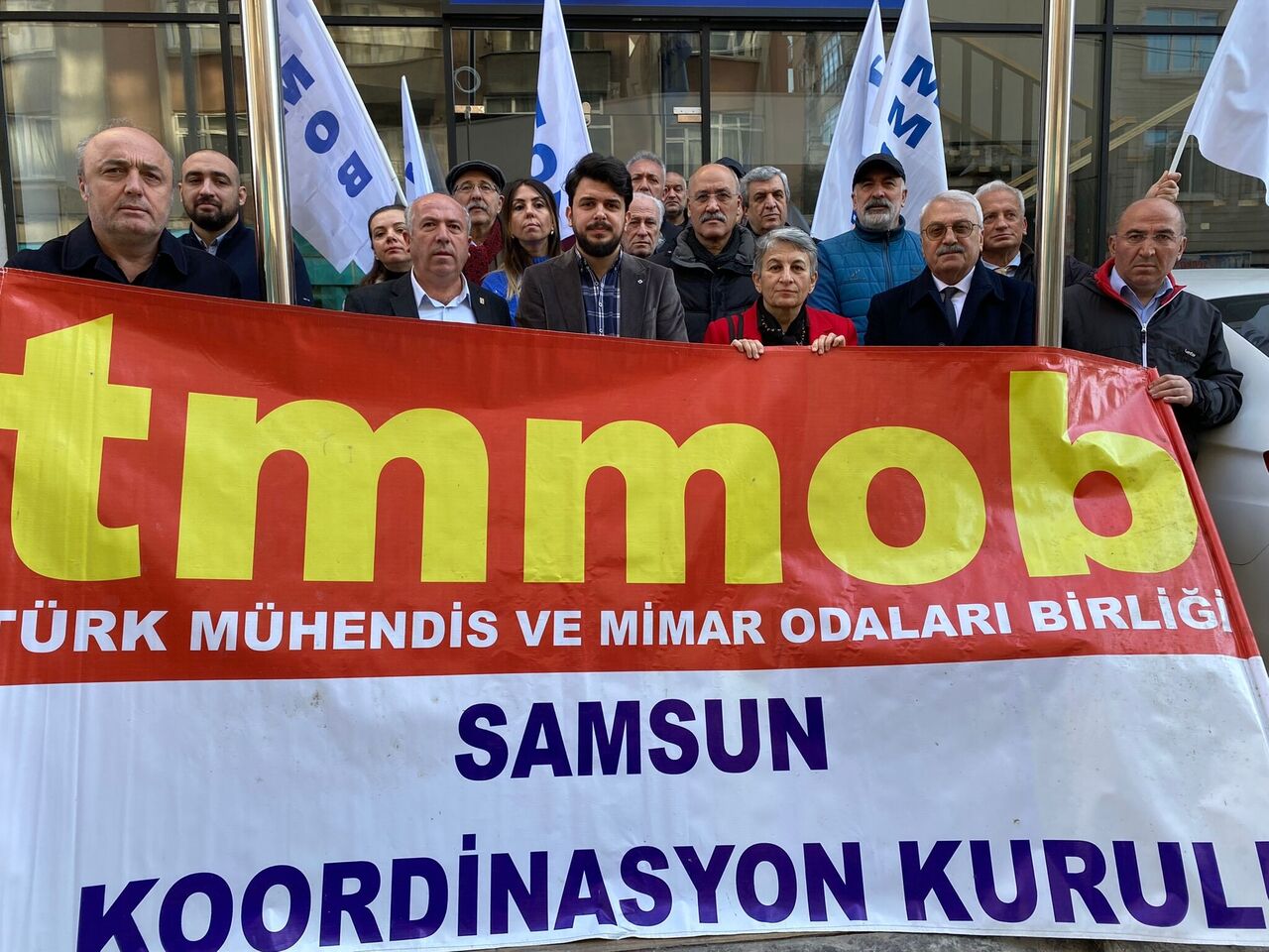 TMMOB Samsun İl Koordinasyon Kurulu adına basın açıklamasını okuyan Mimarlar Odası Şube Başkanı Burak Şener şunları söyledi: "Türk Mühendis ve Mimarlar Odalar Birliği ve bağlı odalarımızın, mesleğimizin ve meslektaşlarımızın çıkarlarını, ülkemizin ve halkımızın çıkarları temelinde korumak ve geliştirmek için mücadele vermektedir. Bu kapsamda Samsun Büyükşehir Belediyesi tarafından dolgu alanında inşaatına başlanılan 153 Kent Yönetim Merkezi ile İlçe Toplu Ulaşım Transfer Merkezi için Mimarlar Odası Samsun Şubesi tarafından yargıya başvurulmuş ve yargıda yürütmesi durdurulma kararı verilmiştir. Mahkeme kararına rağmen hukuk çiğnenerek İlçe Toplu Ulaşım Transfer Merkezi 29 Aralık 2022 tarihinde hizmete açılmıştır. Meslek onuru ve kanunlardan almış olduğu yetkiyi kullanan Mimarlar Odası Samsun Şubesi'nin hukuki kazanımları karşısında çaresiz kalan Mustafa Demir, katıldığı bir canlı yayında 'La sen mimarlar odasısın' ifade kullanılması hem kendi şahsına hem de Samsun halkının adına taşıdığı Büyükşehir Belediye Başkanı makamına yakışmamıştır. On binlerce üyesi bulunan TMMOB ve ona bağlı odalarına karşı takınılan bu tavır ve özellikle Mimarlar Odası Samsun Şubesi söylenen nezaket dışı sözü, doğru bulmuyor ve kınıyoruz."