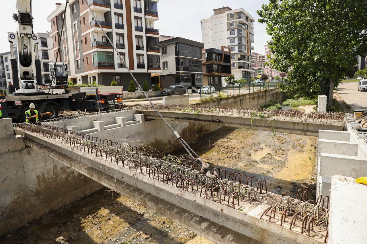 Samsun’un Atakum ilçesi İstiklal Caddesi ile 3110 Caddesi kesişimindeki Afanlı Deresi üzerinde, 11 metre genişliğinde ve 12 metre açıklığında yeni köprü yapım çalışmaları hızla devam ediyor.