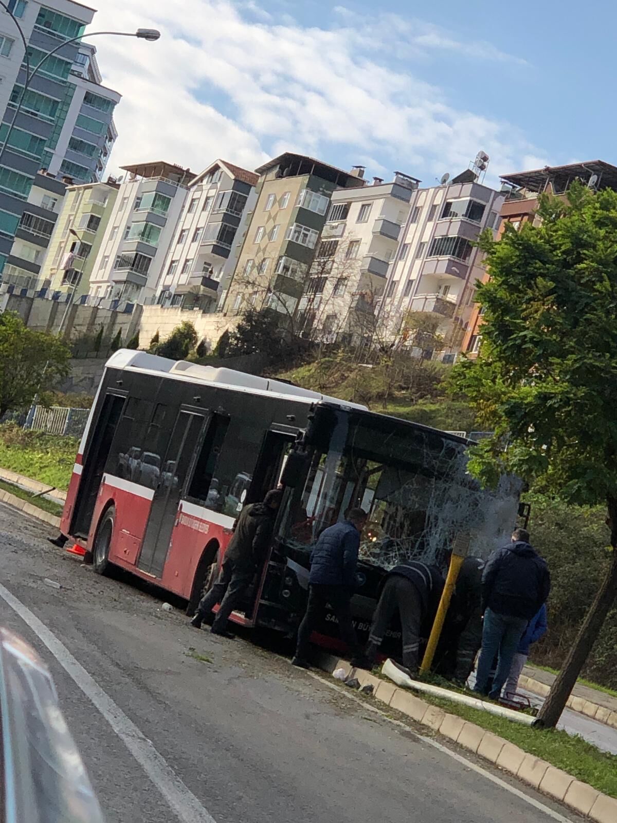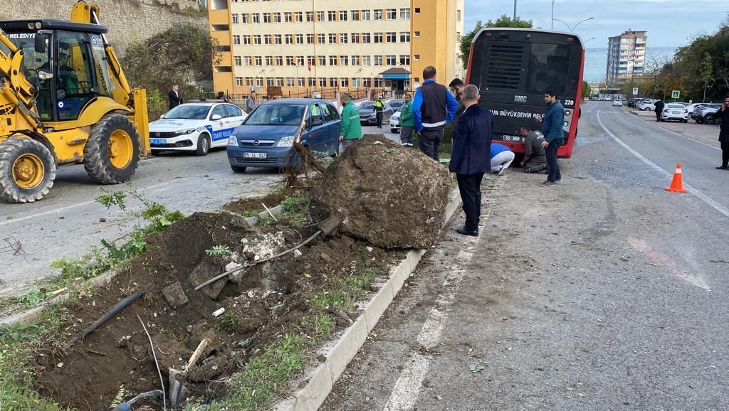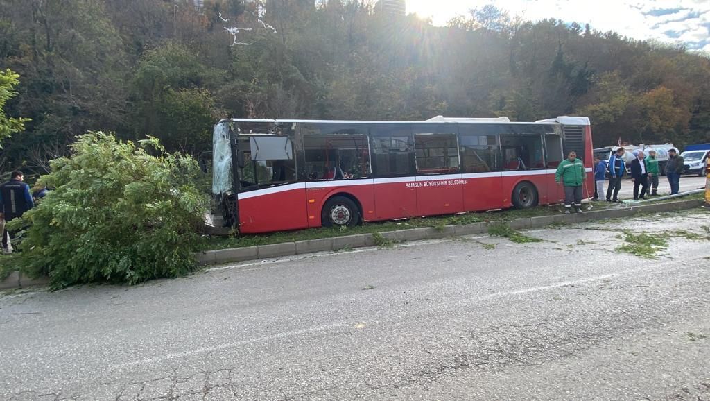 Edinilen bilgiye göre, Samsun Büyüşehir Belediyesi Özel Halk Otobüsü şoförünün direksiyon hakimiyetini kaybetmesi sonucunda önce aydınlatma direğine sonra da ağaca çarptı.
