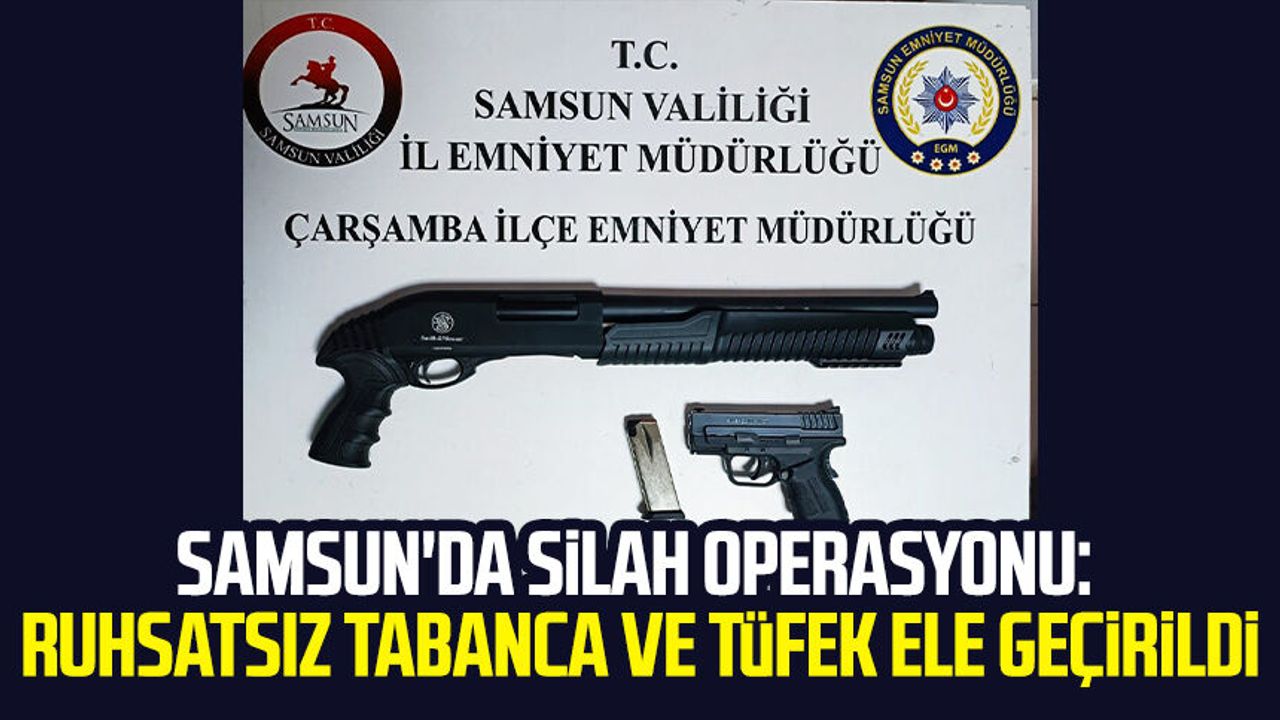 Çarşamba İlçe Emniyet Müdürlüğü ekiplerince yapılan çalışmalarda, S.Y. (34) isimli şahsın aracında arama gerçekleştirildi. Aramada, 1 adet ruhsatsız tabanca ve 1 adet ruhsatsız tüfek ele geçirildi.
