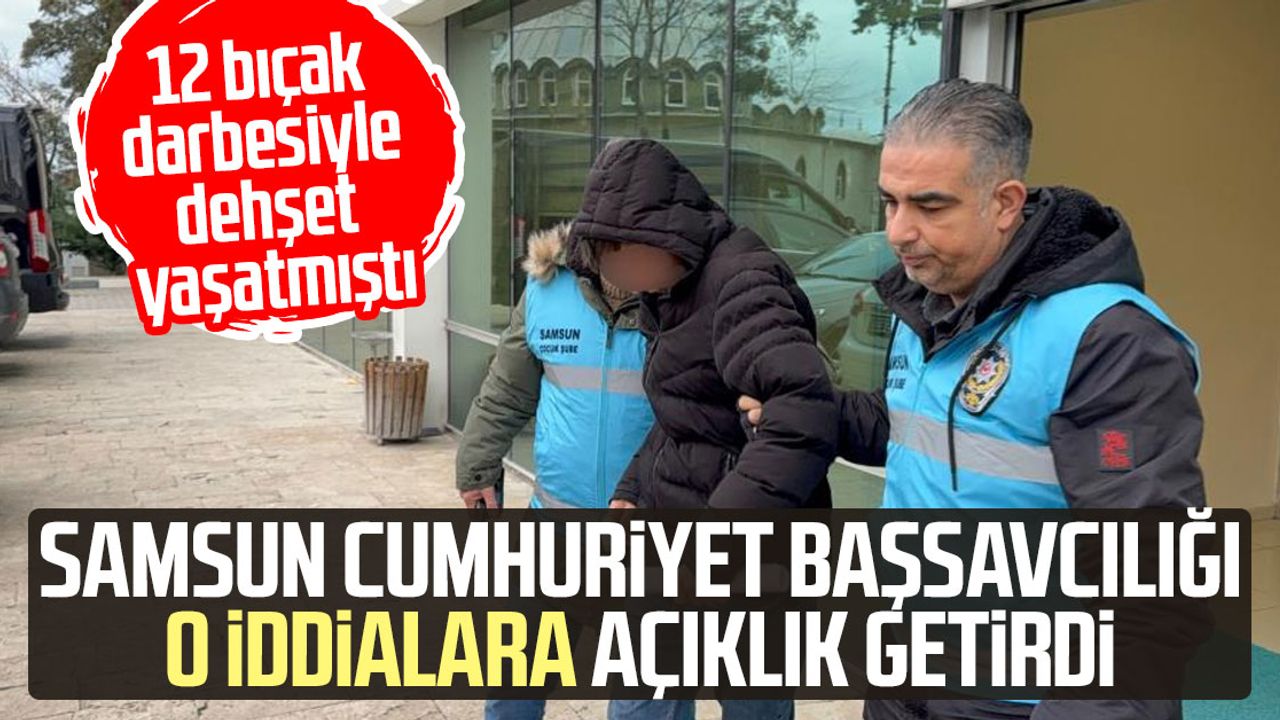 Açıklamada, "18 Ocak günü saat 20.00 sıralarında Samsun ili İlkadım ilçesi Kadifekale Mahallesi'nde mağdur P.A.'nın sırt kısmından 9, ayak kısmından 2, boyun kısmından 1 olmak üzere kesici alet ile hayati tehlike geçirmeyecek ve basit tıbbi müdahale ile giderilemeyecek şekilde yaralandığı olayla ilgili Cumhuriyet Başsavcılığımızca derhal soruşturma işlemlerine başlanmıştır. Eğitim ve Araştırma Hastanesi'nde tedavisi devam eden mağdurun alınan beyanı ve teşhis işlemi sonrası yaralama eylemini gerçekleştiren suça sürüklenen çocuk E.K. (16) gözaltına alınarak 'silahla kasten yaralama' suçundan tutuklanmış olup halen kapalı ceza infaz kurumunda bulunmaktadır.