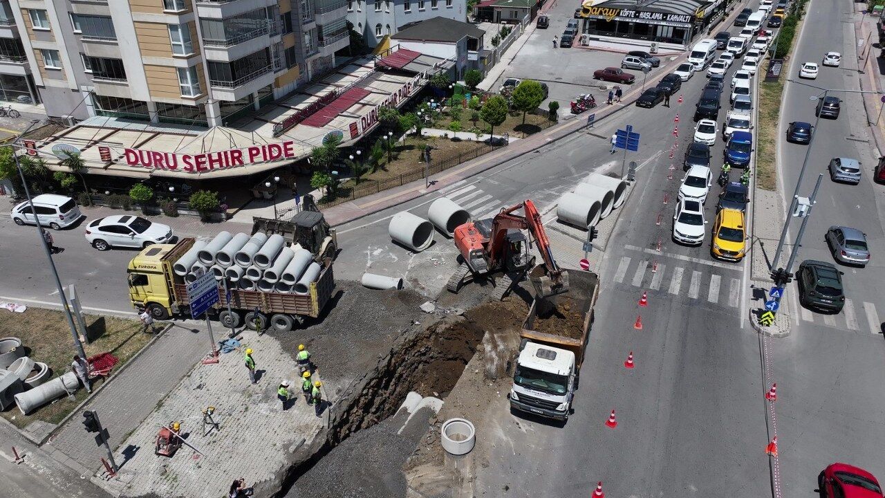 Dere çıkış noktasından Odunpazarı Caddesi ve Akdeniz Caddesi kesimine kadar uzanan güzergâhta, iki farklı altyapı hattı eş zamanlı olarak inşa ediliyor. Yağmur suyu hatlarında 600 ile 2000 milimetre arasında değişen çaplarda borular döşeniyor. Kanalizasyon hatlarında ise 600 ve 800 mm çapındaki borularla taşıma kapasitesi artırılıyor. Bugüne kadar bin 592,10 metre imalat tamamlandı. Kalan 509 metrelik bölümün de yakın zamanda tamamlanması planlanıyor.